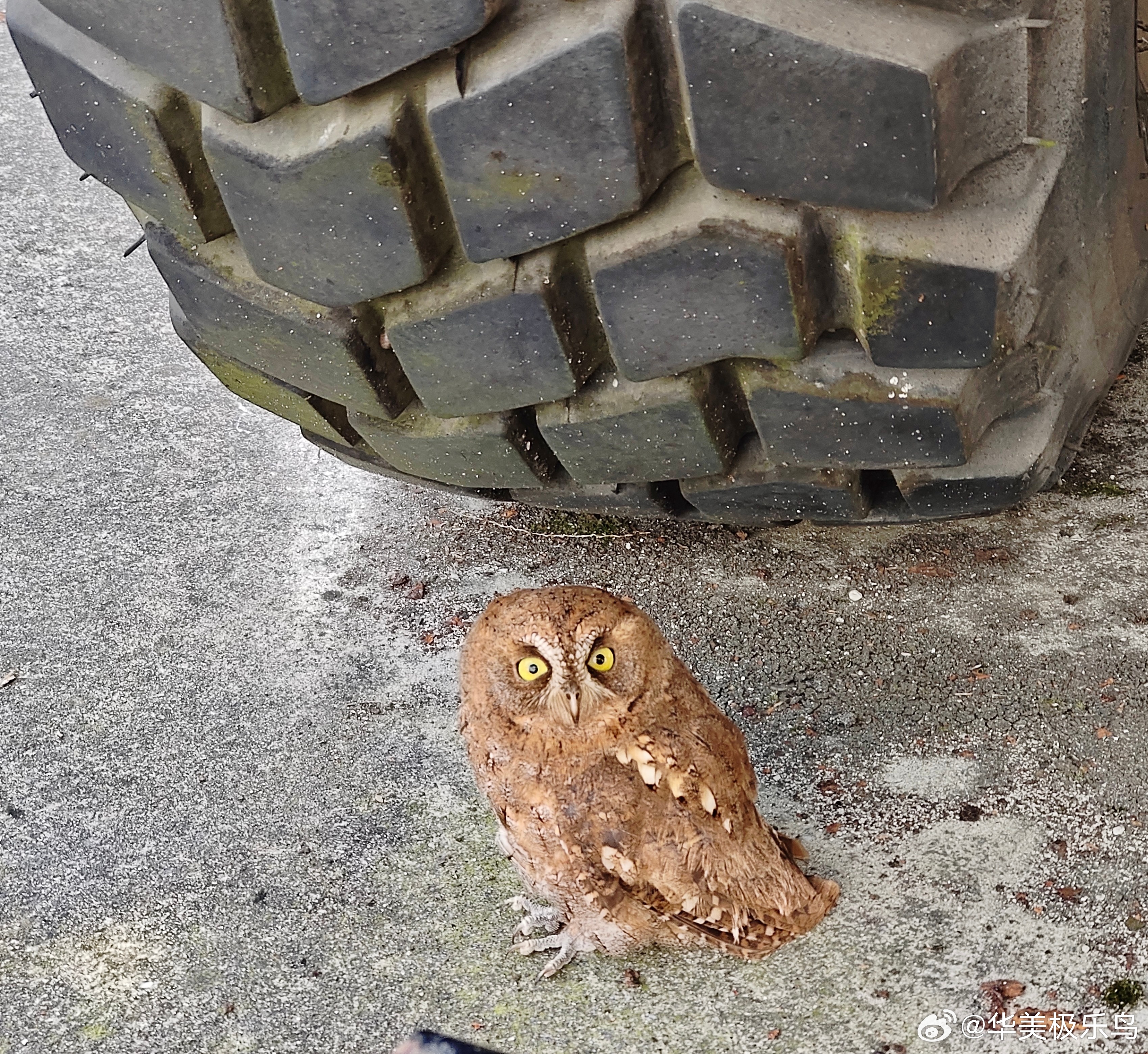#鸟粉投稿# 机场里的【红角鸮】🦉(猫头鹰是保护鸟类为了安全起飞,机场会有一些
