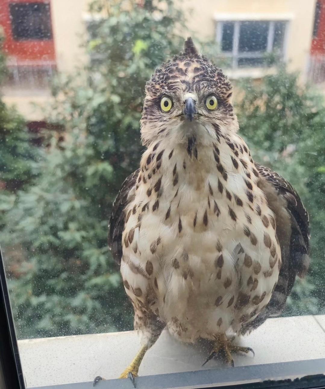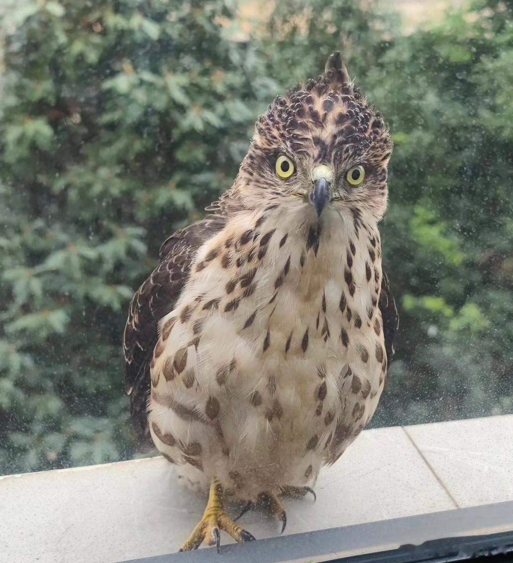 停落在窗户外面的【凤头鹰】一脸懵逼👀
