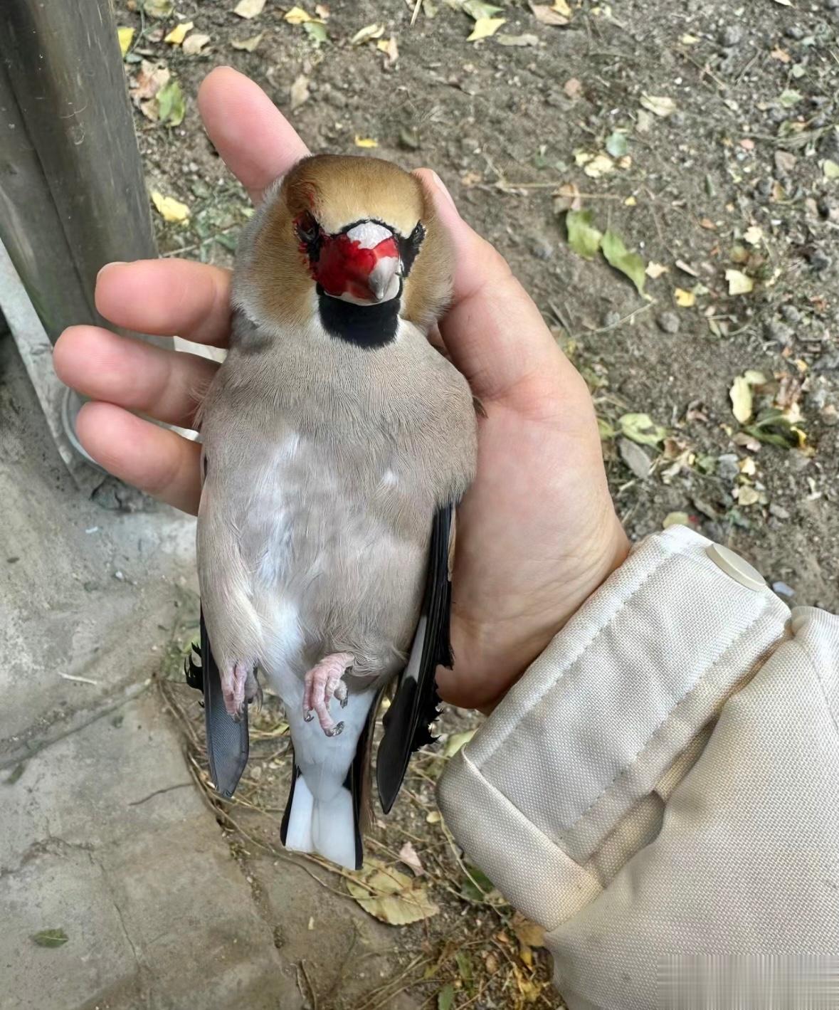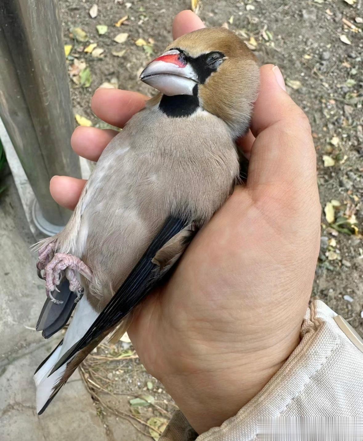 嘴上都是鲜血的【锡嘴雀】看样子是撞玻璃了 一定很疼吧[泪]