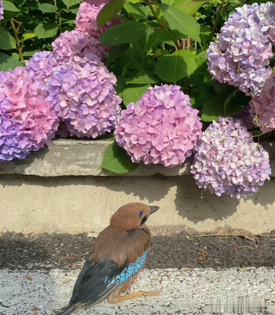 绣球花下的【松鸦】宝宝画面好美呀