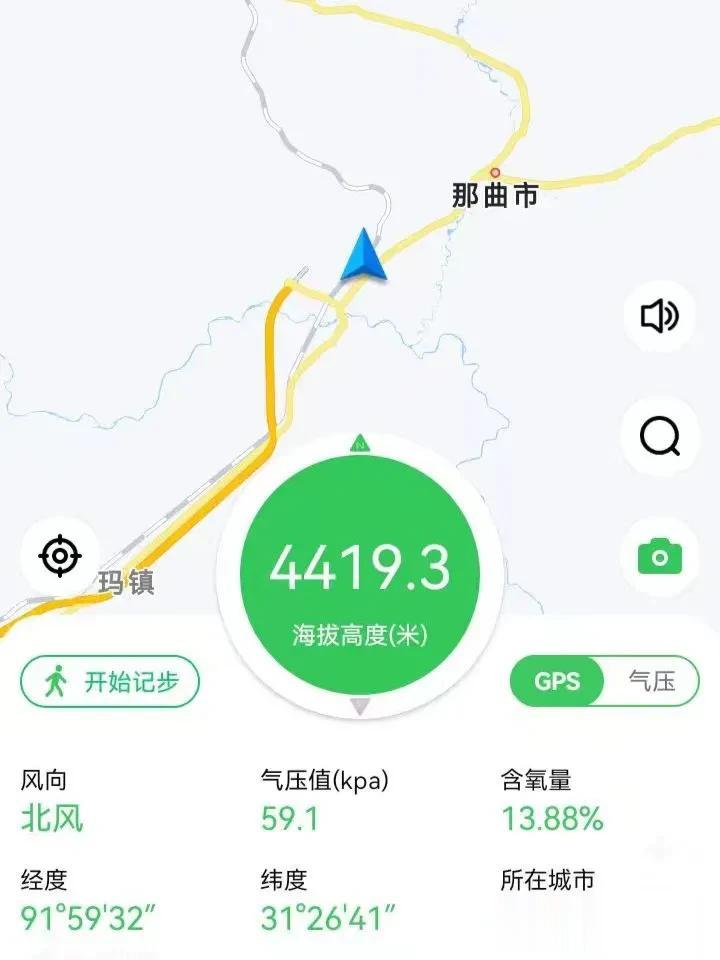 11月29日7时44分,乘坐Z21次列车到达那曲站,那曲,温度-8℃、GPS海拔高度4419.3米(北京61米)、含氧量13.88%(北京20.85%)。