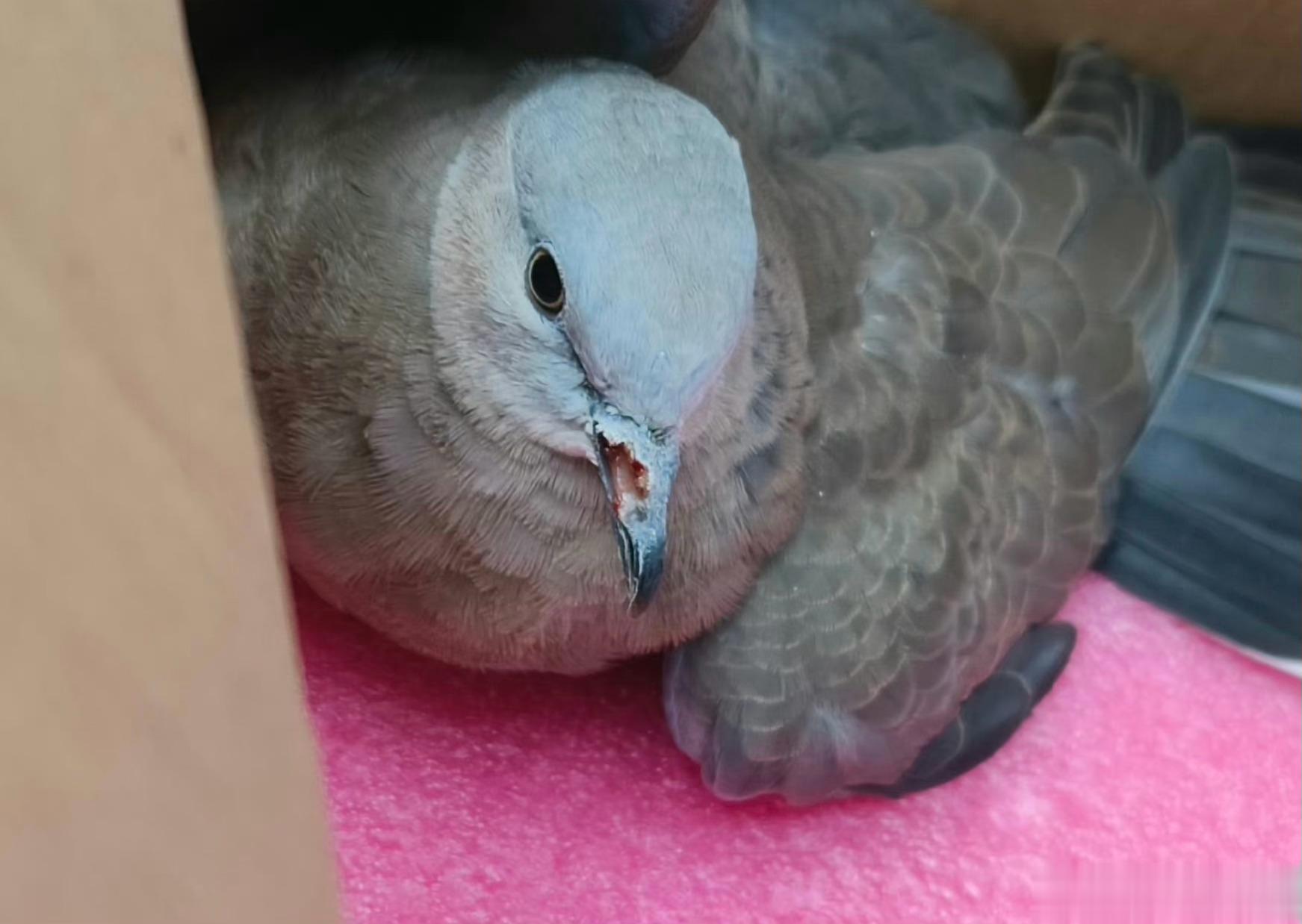 #撞玻璃的鸟# 撞玻璃的珠颈斑鸠喙都撞破了,舌头若隐若现[泪]