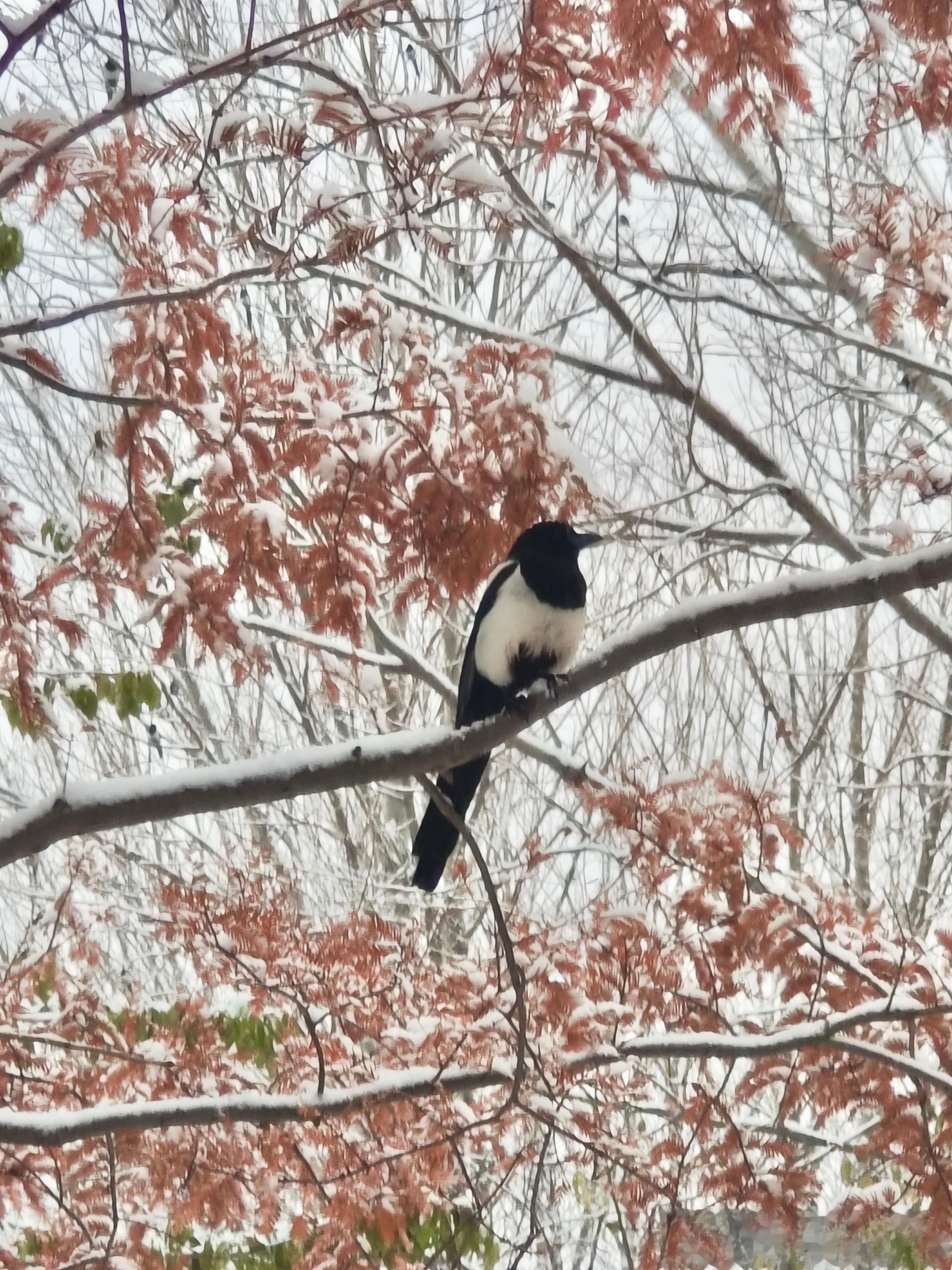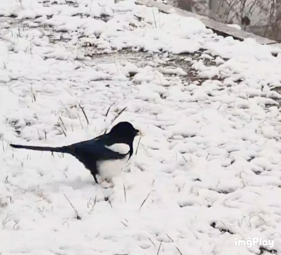 #鸟粉投稿# 冬天的喜鹊和雪更配[开学季]