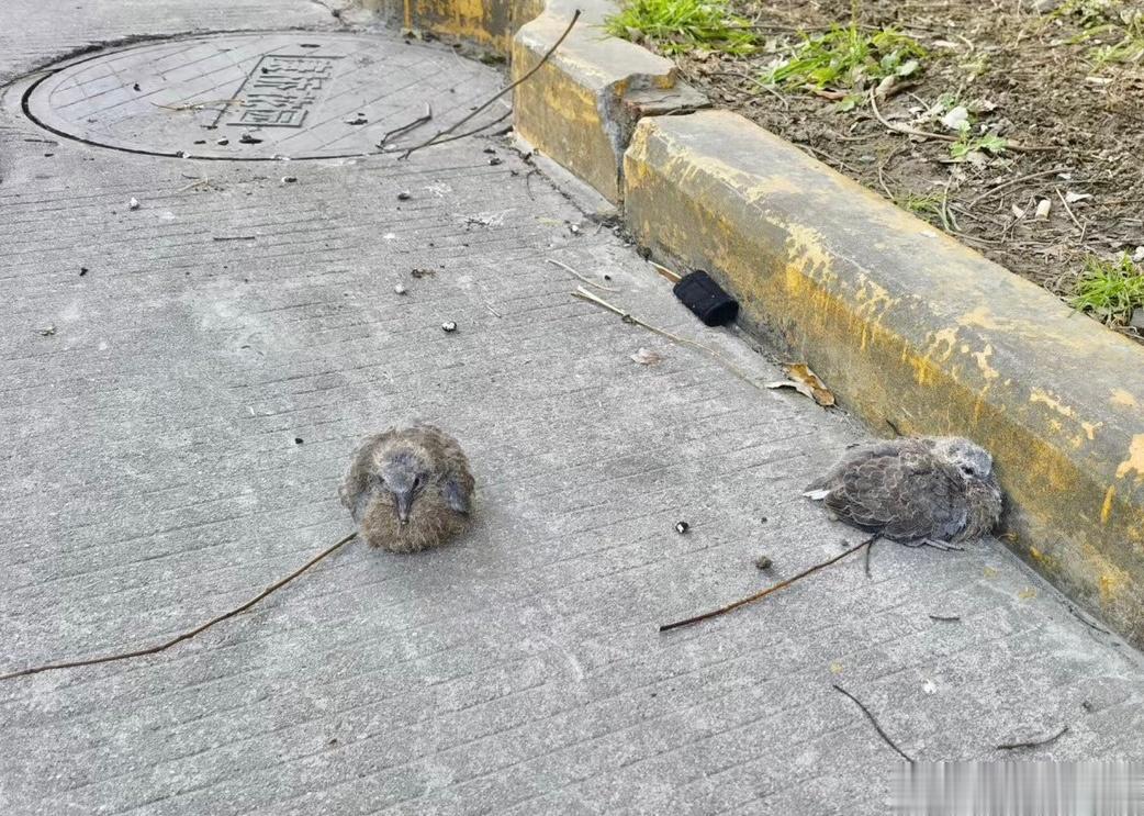 ???珠颈斑鸠的危楼塌了把幼鸟装纸盒里挂树上试试🙊