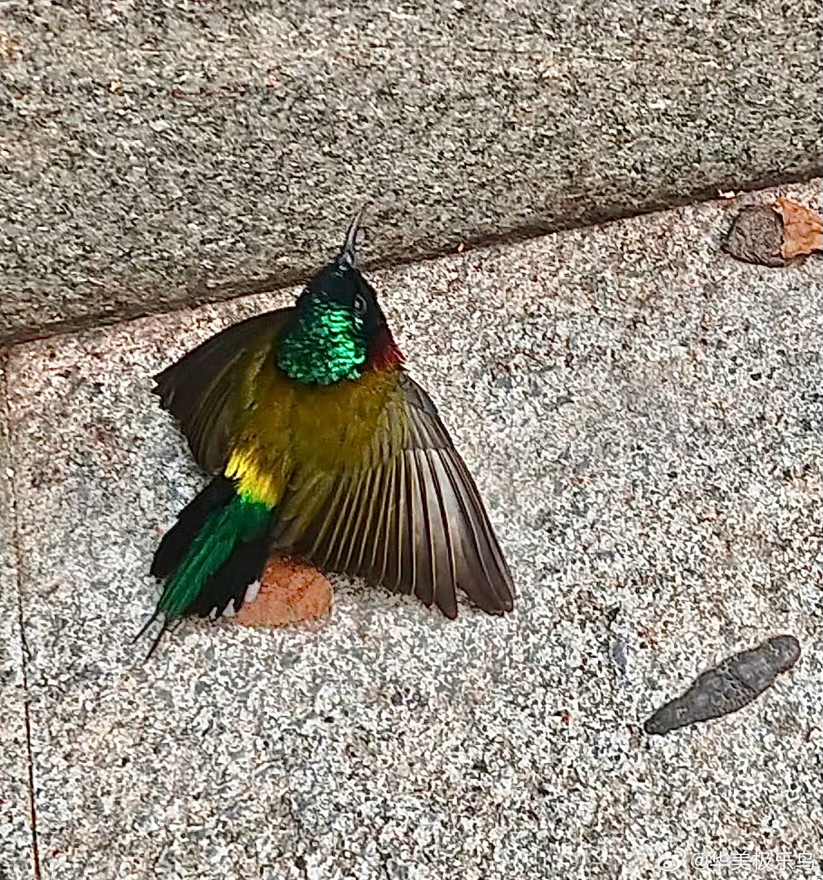 #撞玻璃的鸟# 撞玻璃的【叉尾太阳鸟】遇到这种情况可以给小鸟放在旁边安全的灌木丛