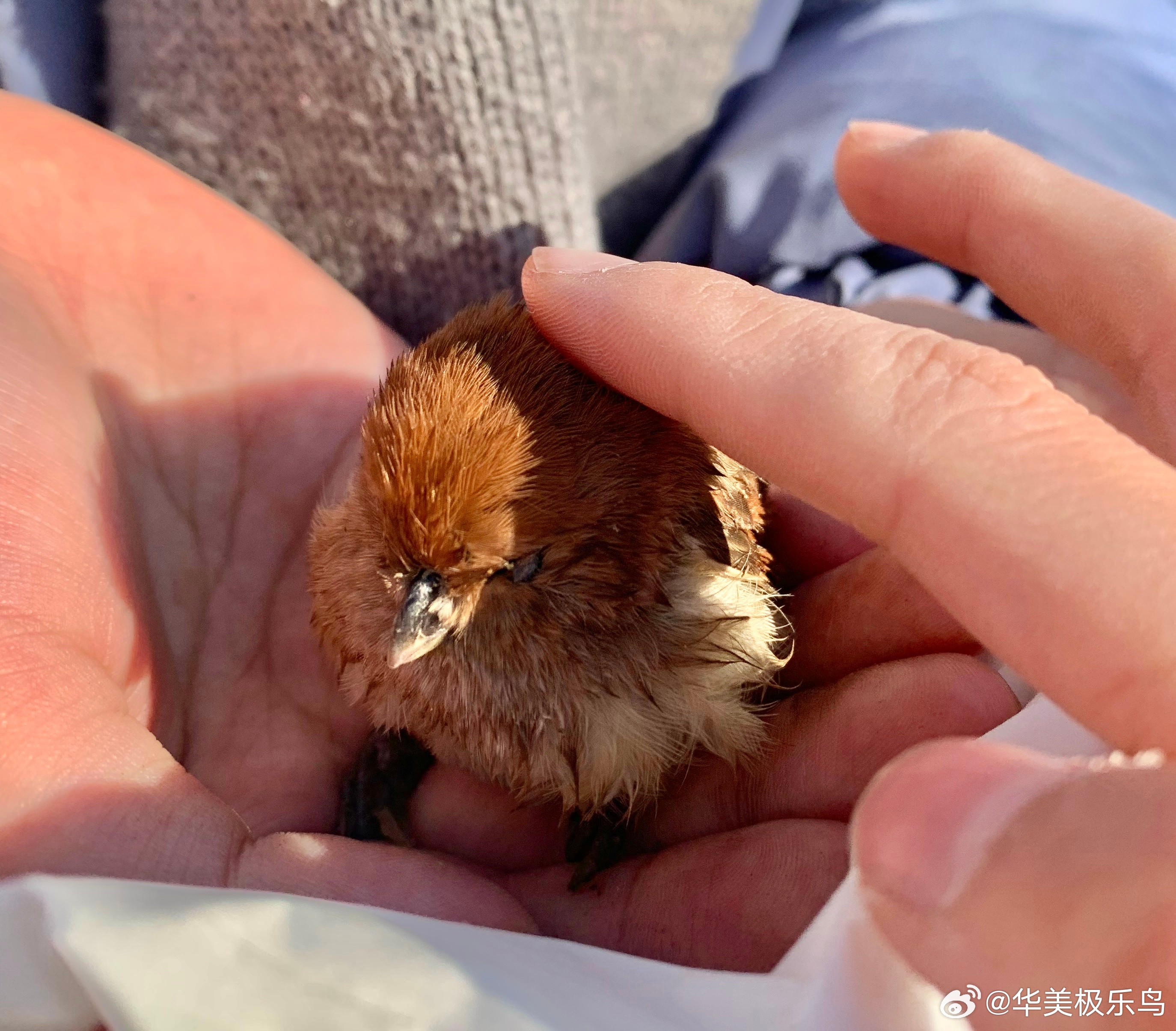它还没茶叶蛋大 休息会就放走了 祝它好运