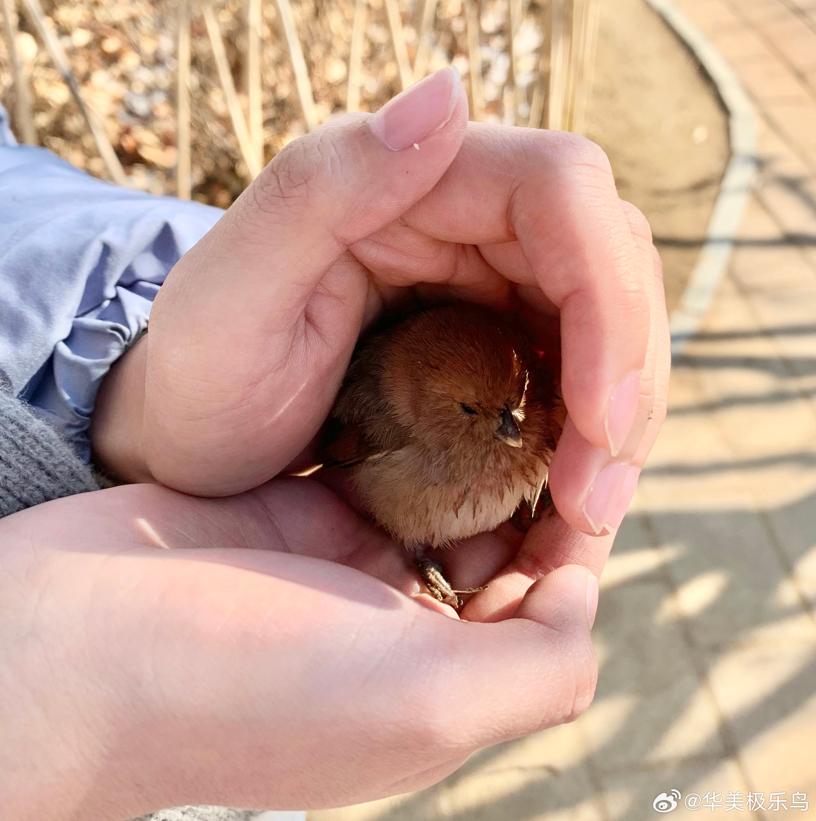 #鸟粉投稿# 从流浪猫口中救下一只【棕头鸦雀】它还没茶叶蛋大 休息会就放走了 祝