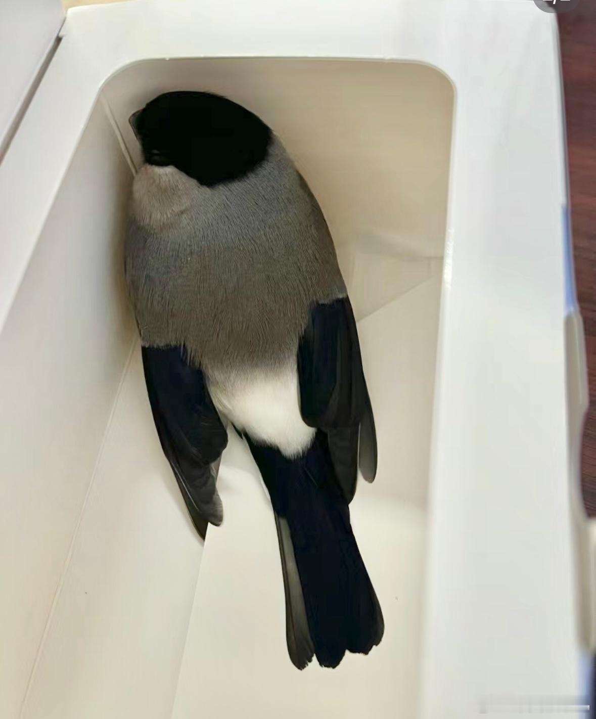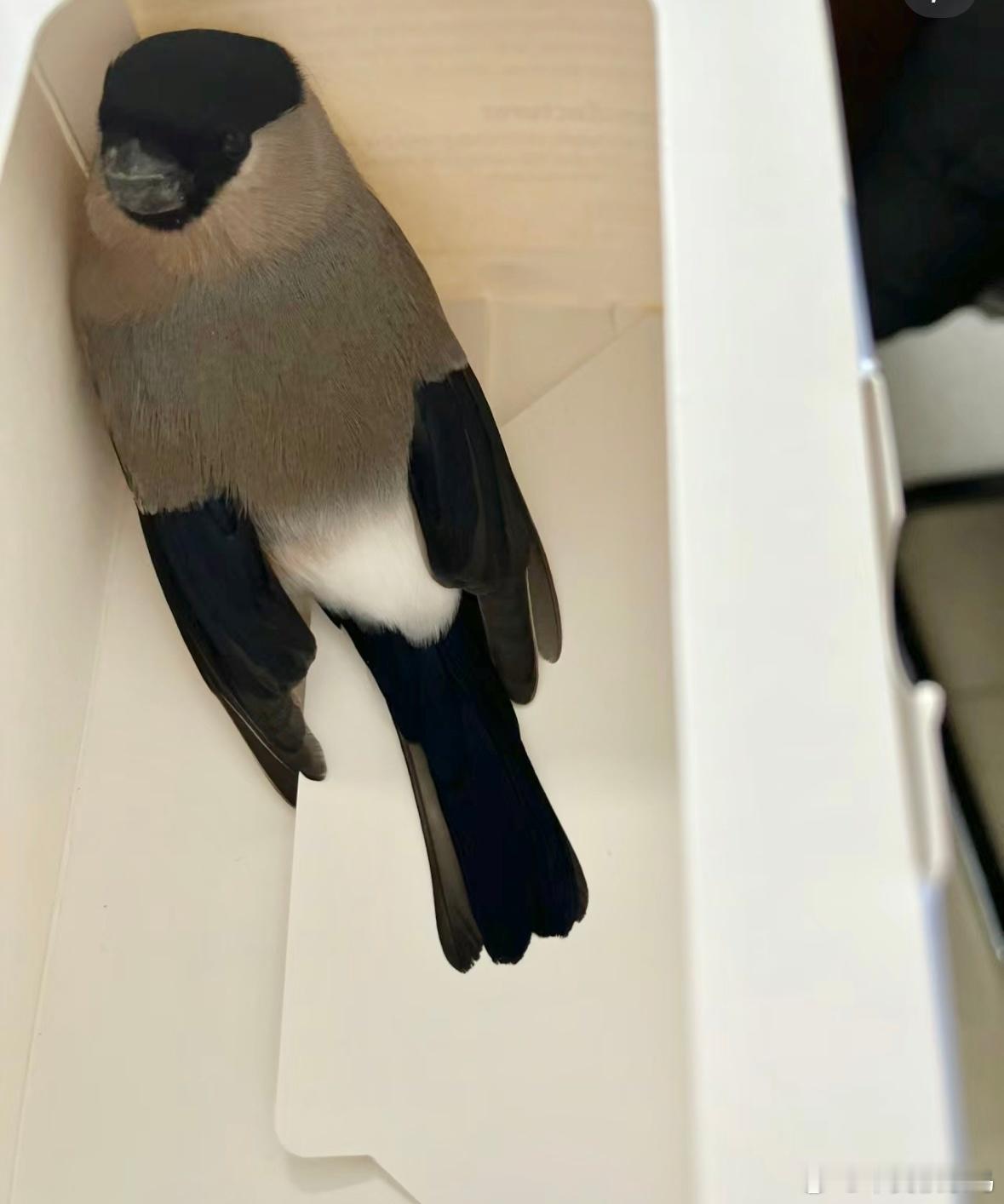 #撞玻璃的鸟# 撞玻璃的【红腹灰雀】在纸盒休息会可以放飞~