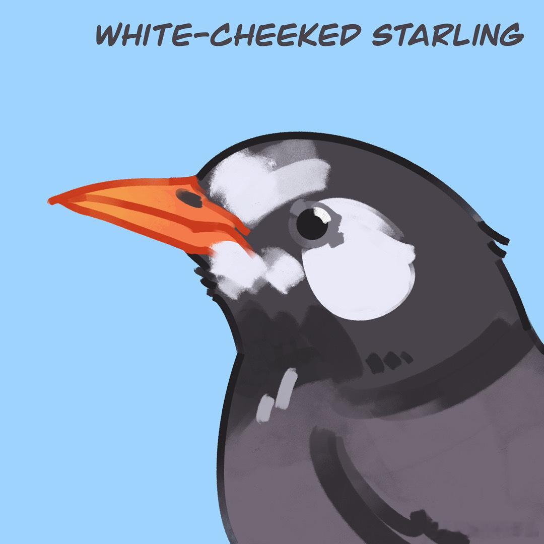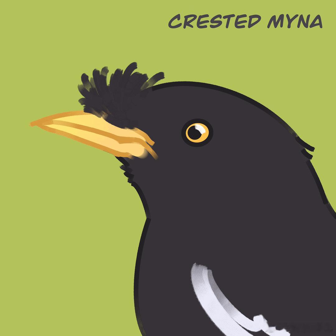 #小天才的鸟类绘画# 灰椋鸟、八哥、丝光椋鸟好清新的画风 [心]特征抓得很到位不