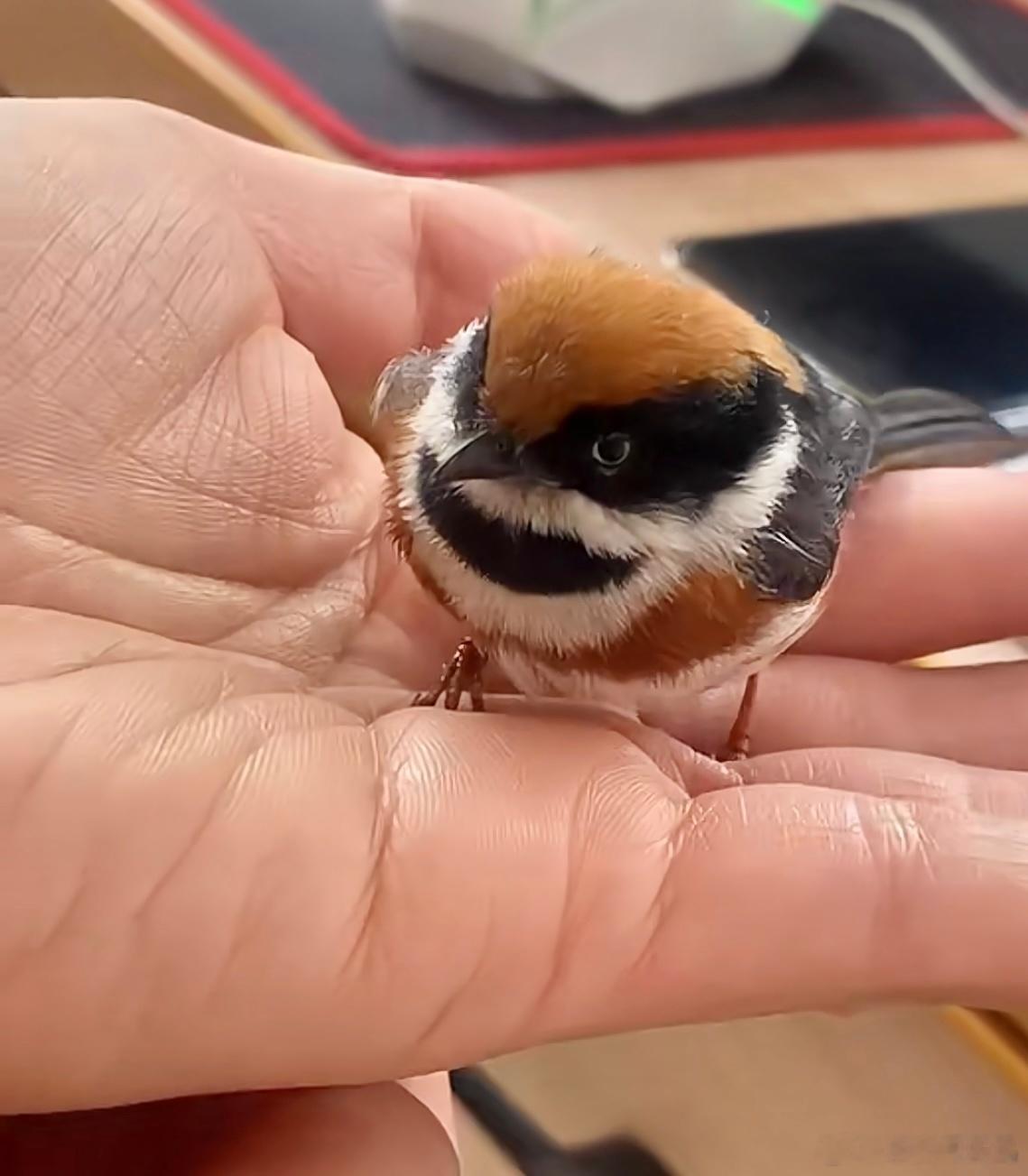 飞手上的【红头长尾山雀】小小一只 可可爱爱