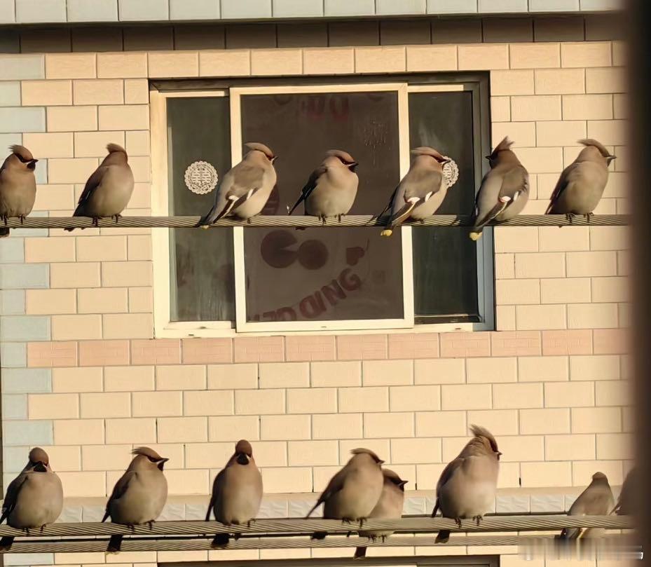 窗外的太平鸟它们的羽毛特顺滑!