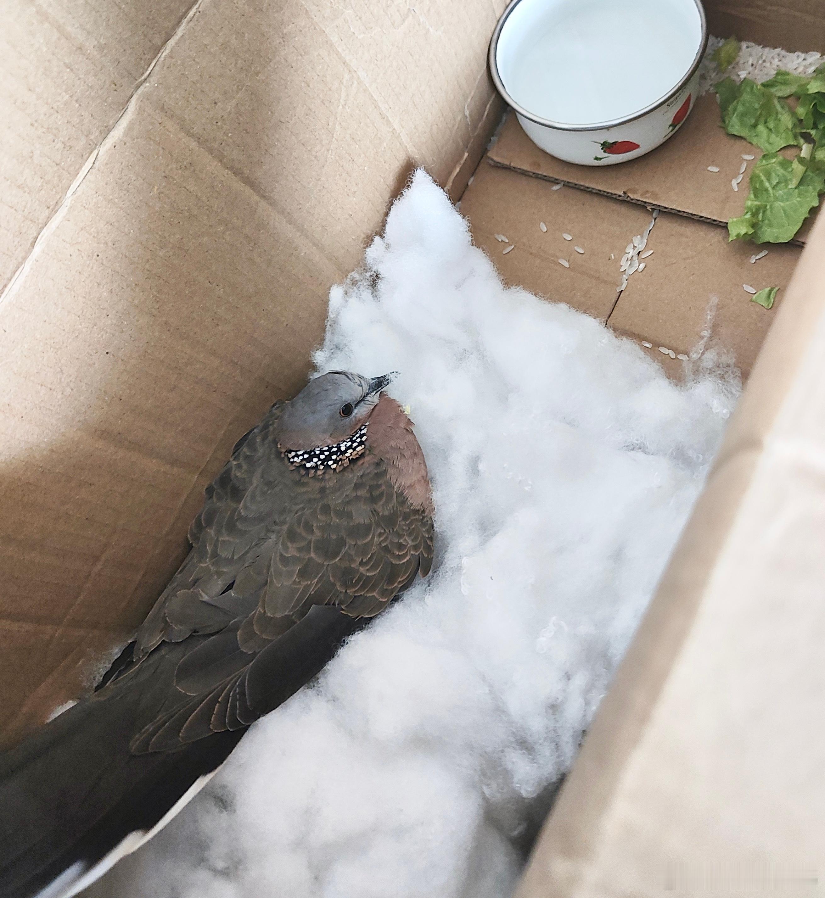 #鸟粉投稿# 飞屋里的【珠颈斑鸠】脖子受伤了🤕了 联系110后被野生救助站接