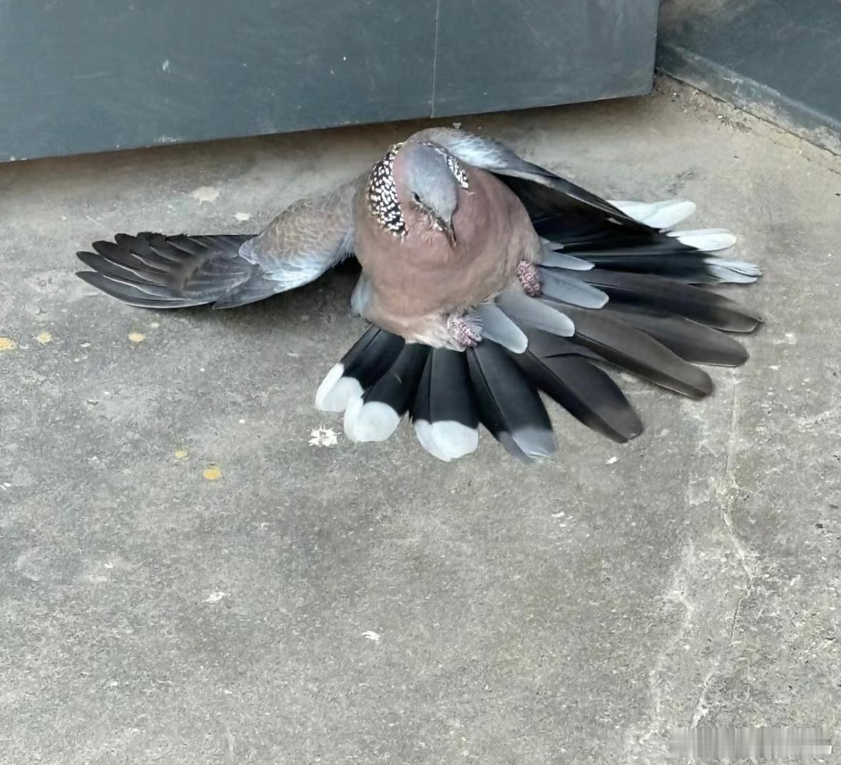 一屁股坐地上的【珠颈斑鸠】裙子还挺好看🙊估计撞玻璃了