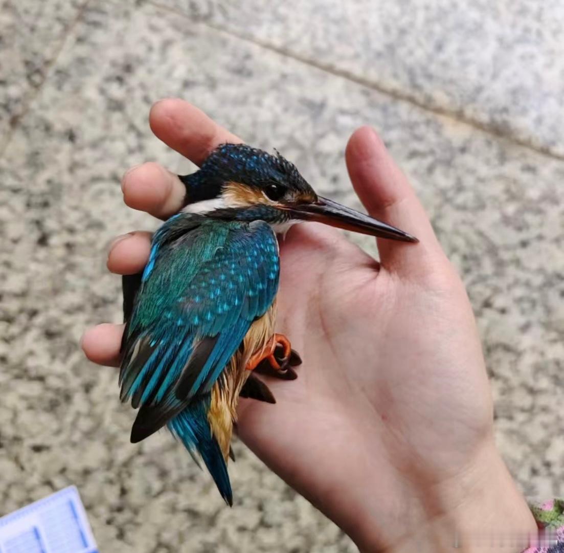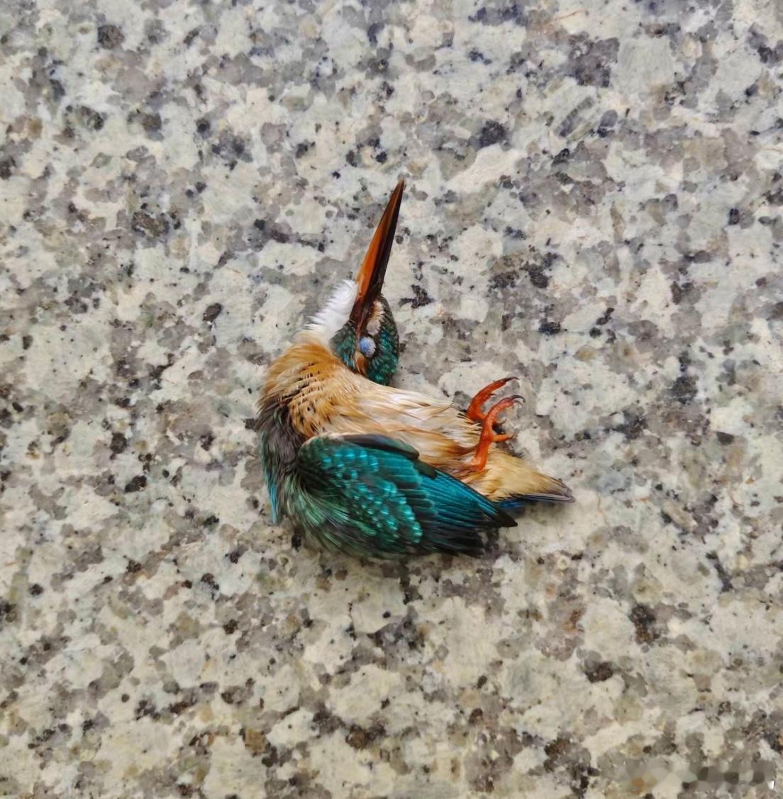 #撞玻璃的鸟# 撞玻璃的【翠鸟】在地上的样子好可怜 万幸的是它飞走了