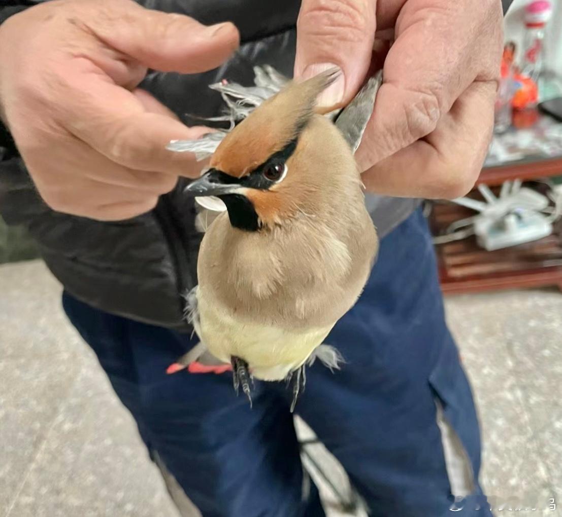 挂渔网上的【小太平鸟】娴熟的抓鸡手法会让小鸟感到疼痛😣尽快放飞就好