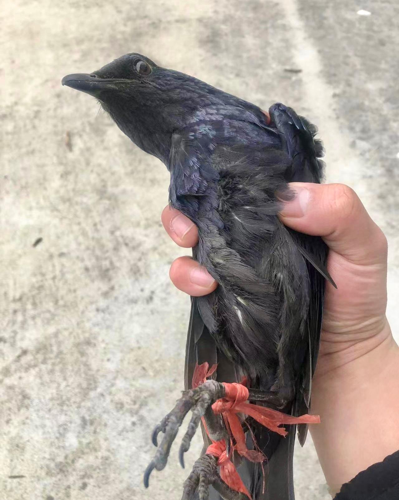 #鸟粉投稿# 把握良鸡环节是一只【紫啸鸫】被别人拴住了,然后又被好心人解救了野生