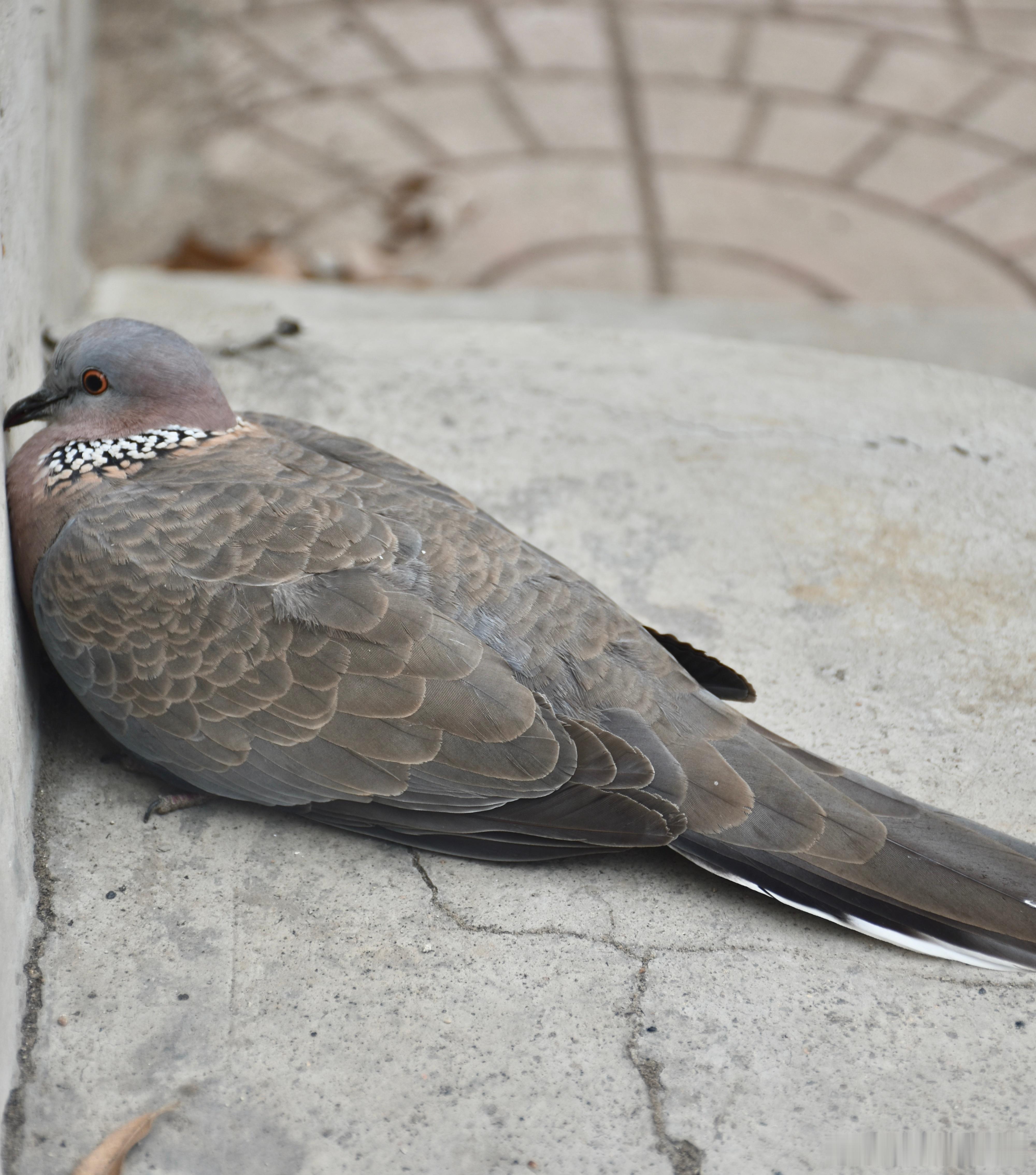 #撞玻璃的鸟# 撞玻璃的【珠颈斑鸠】已经被撞迷糊了(面壁中附近没有流浪猫啥的就不