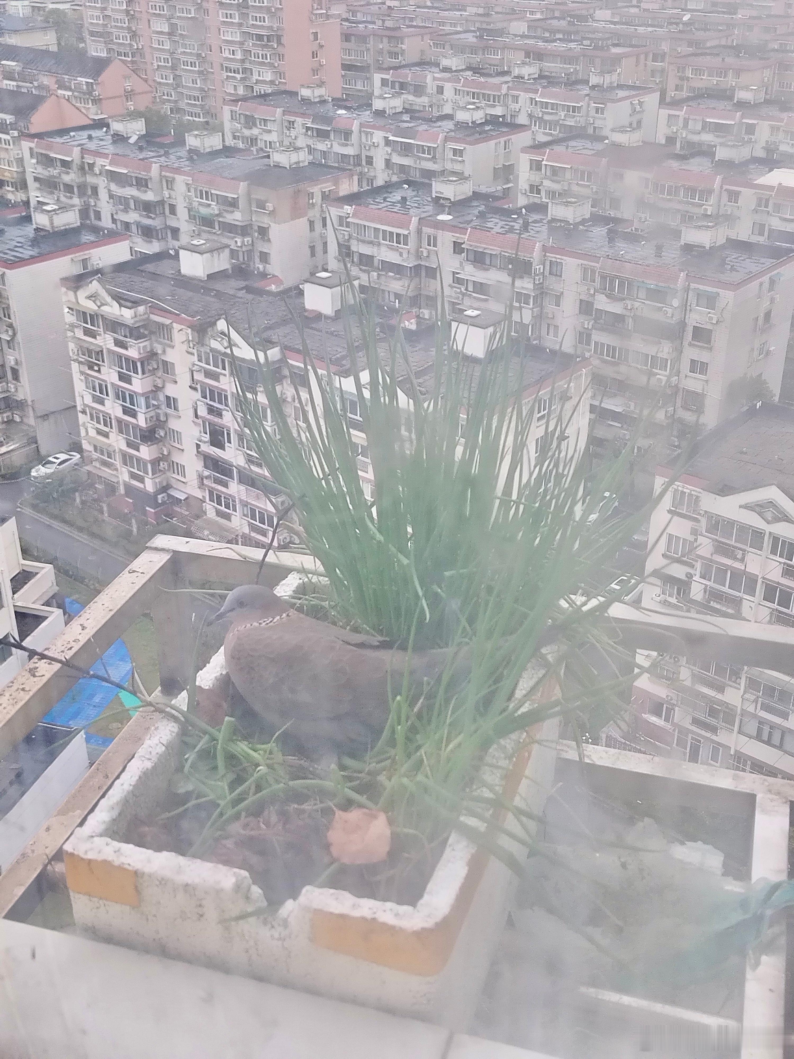 #鸟粉投稿# 在葱盆里下蛋的【珠颈斑鸠】(葱香味都压塌了🙊