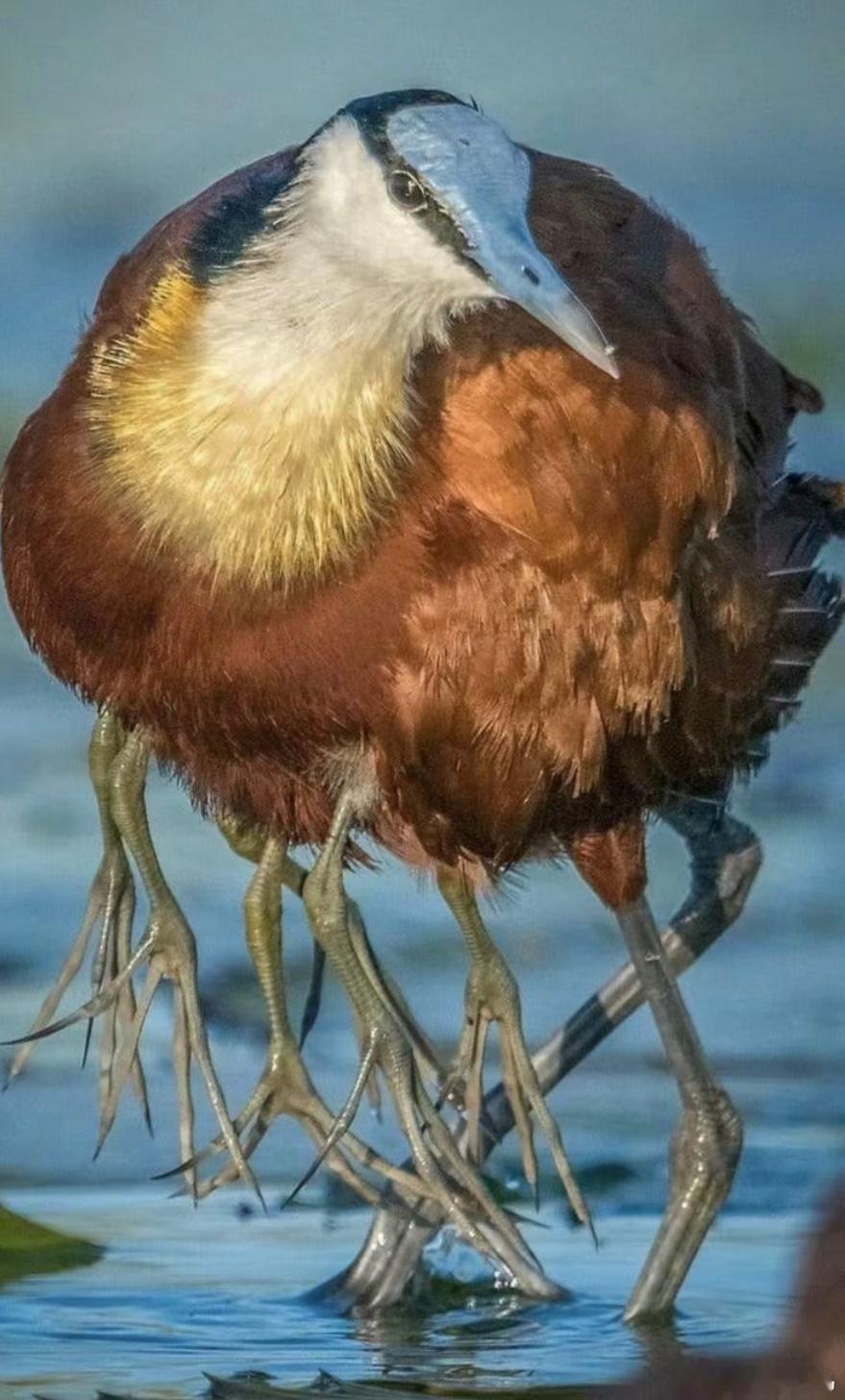 分布在非洲的【非洲雉鸻héng】鸟爸爸遇到危险的时候会把宝宝夹在咯吱窝下面,然后