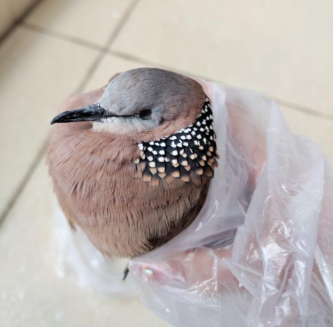 #撞玻璃的鸟# 撞玻璃的【珠颈斑鸠】再也不能随地大小蛋了[泪]