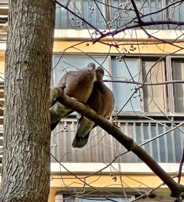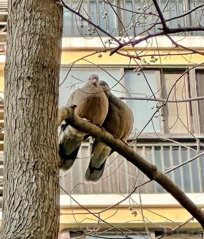 #鸟粉投稿# 枝头上卿卿我我的【山斑鸠】贴贴~