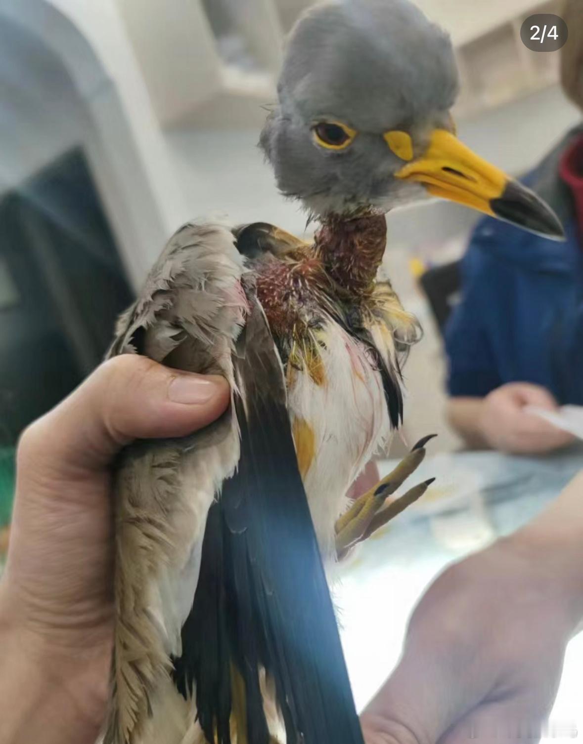 是一只【灰头麦鸡】脖子的毛毛都没了,看着好疼啊希望它能好起来[泪]