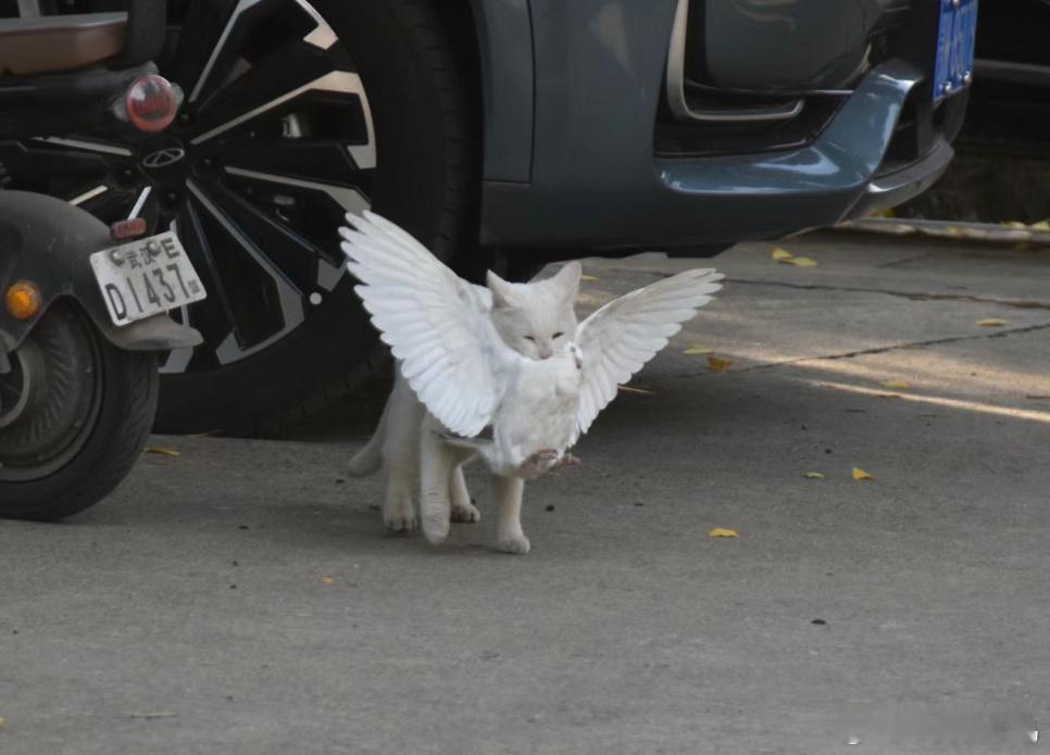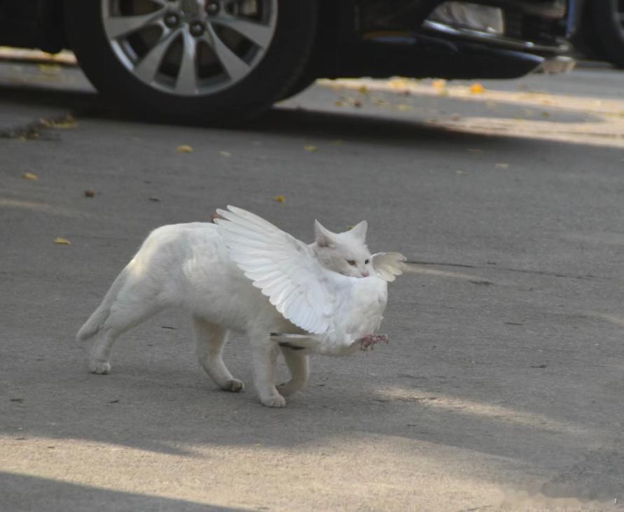流浪猫抓到了一只小白鸽