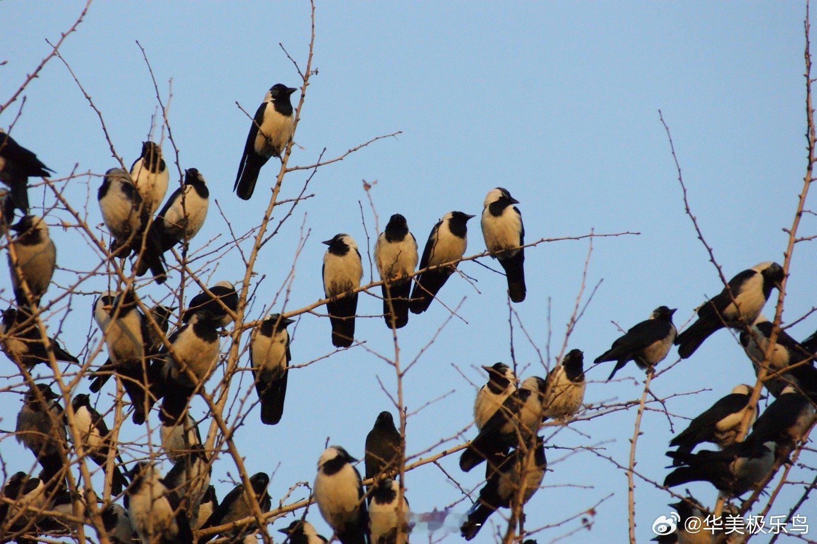 #鸟粉投稿# 满树枝的【达乌里寒鸦】鸦鸦开会