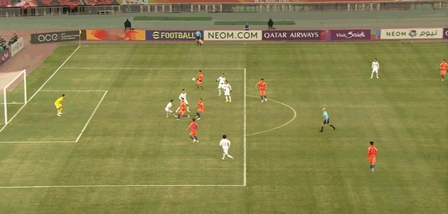 上半场第7分钟,横滨水手安德森·洛佩斯在禁区中路摆脱防守队员左脚射门得手(图1)。比赛在高节奏,高对抗中进行,场面精彩纷呈,王大雷两次扑出对手一对一的射门,上半场后半段,山东泰山全面反攻,围攻川崎水手球门,第41分钟,刘洋丧失绝佳机会,浪费了费南多的精准妙传,一脚将球打高。