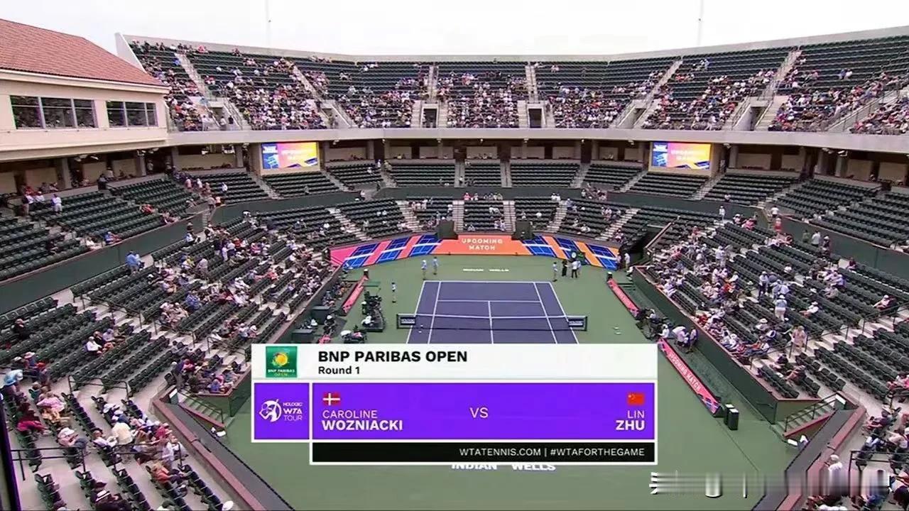 WTA1000印第安维尔斯站女子单打第一轮,中国选手朱琳对阵丹麦选手沃兹尼亚奇。
