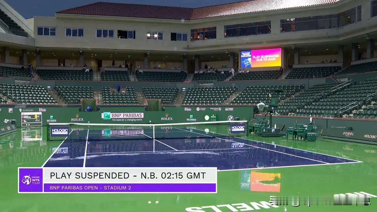 第二盘,朱琳保发1-0领先,比赛因雨中断,球员离场……