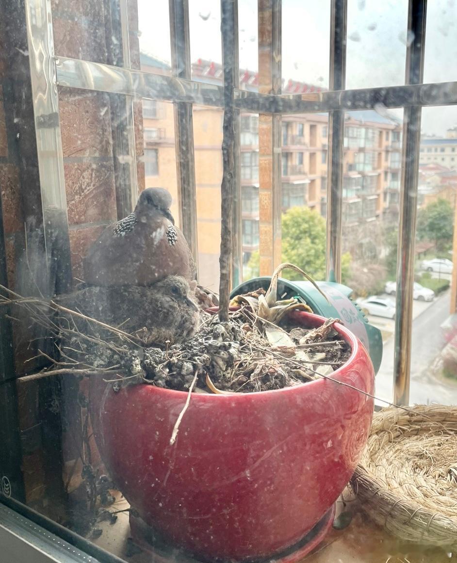 #鸟粉投稿# 花盆里随地大小蛋的珠颈斑鸠盆栽直接被压塌🙊旁边放了几个人工鸟窝宝