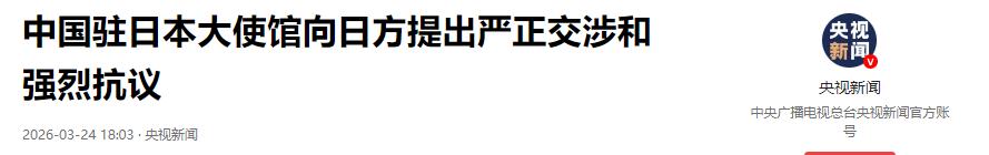 参考信息2:《中国驻日本大使馆向日方提出严正交涉和强烈抗议》央视新闻2026.03.24