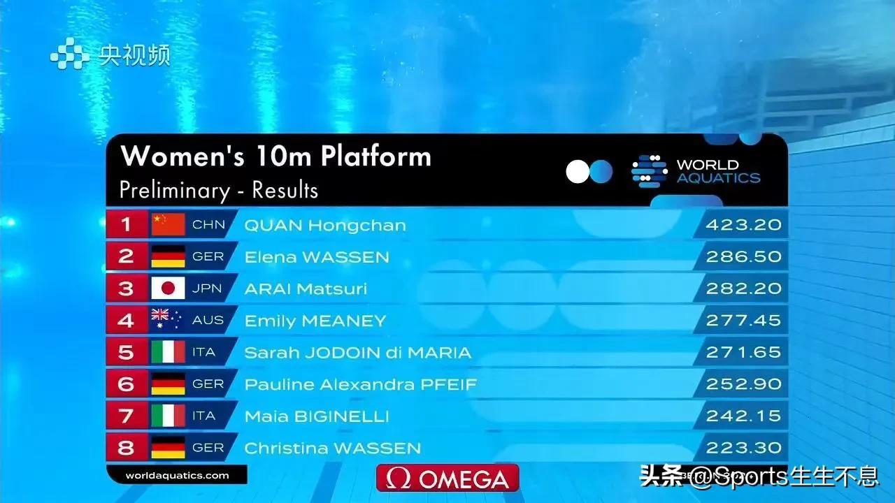 2024跳水世界杯柏林站, 3月22日,女子十米台预赛,全红婵以领先第二名136.7分的成绩排名第一晋级决赛。 德国、日本、澳大利亚和意大利选手分列二至五位。 北京时间3月25日00:30将进行女子十米台决赛。
