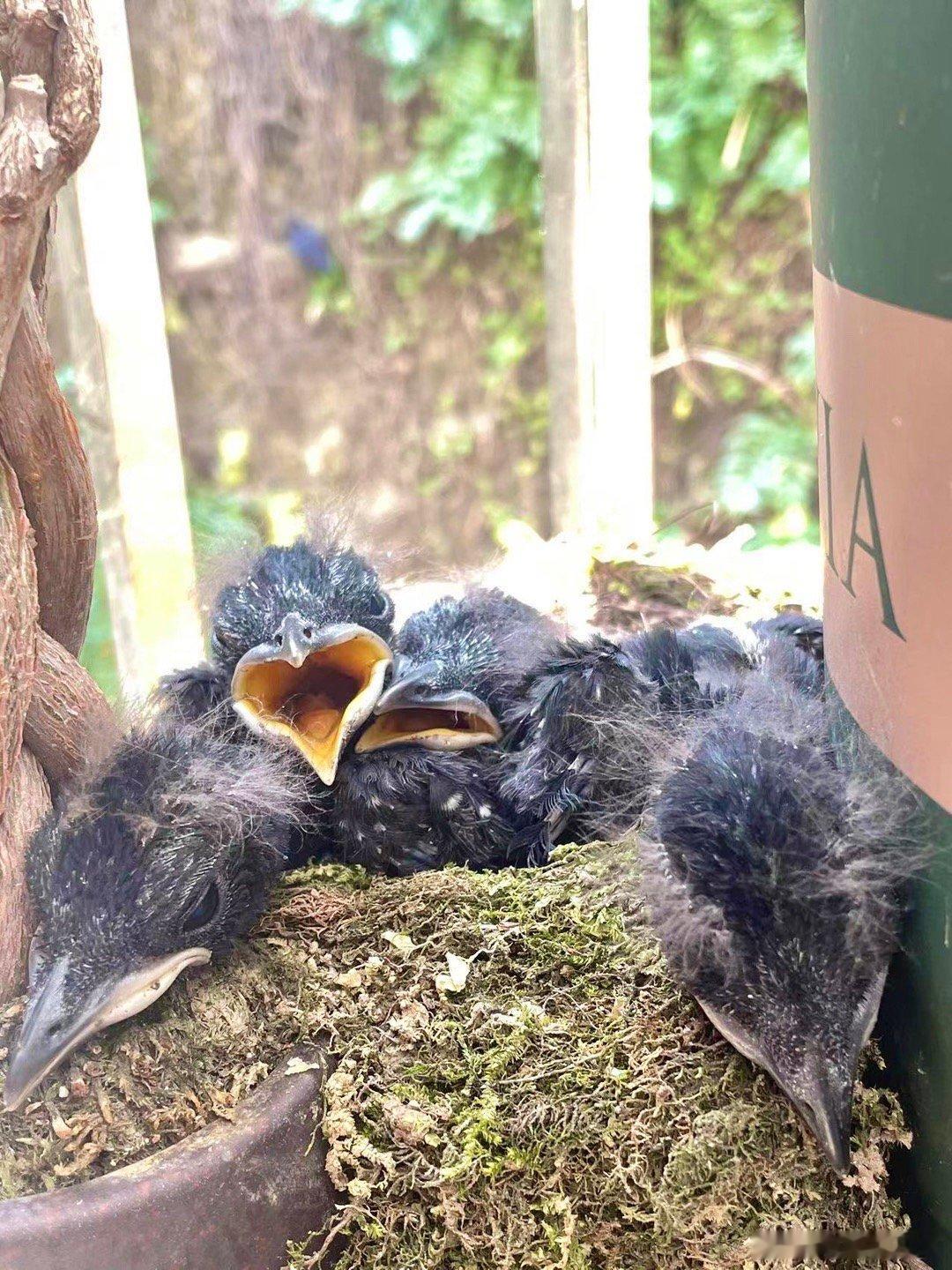 #鸟粉投稿# 不辞辛苦的紫啸鸫父母每天都要抓几百只小虫子才能喂饱窝里的四只宝宝