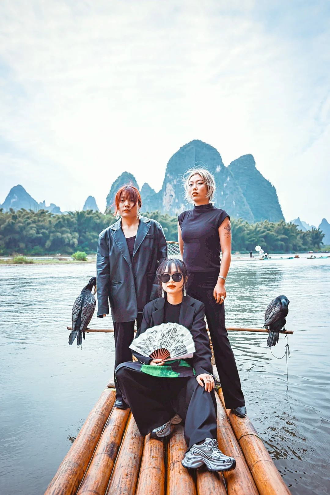 竹筏,鱼鹰,服装都可以付费装扮好拍照