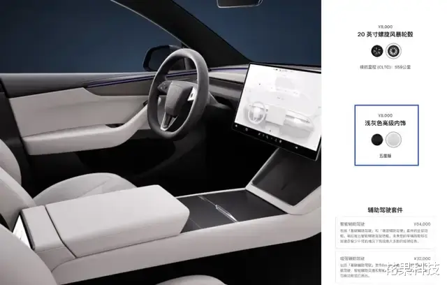 在内饰方面,原来的浅色内饰改成了「浅灰色高级内饰」,整体色调更好看,也会更耐脏一点,选装价格也依旧是 8000 元。
