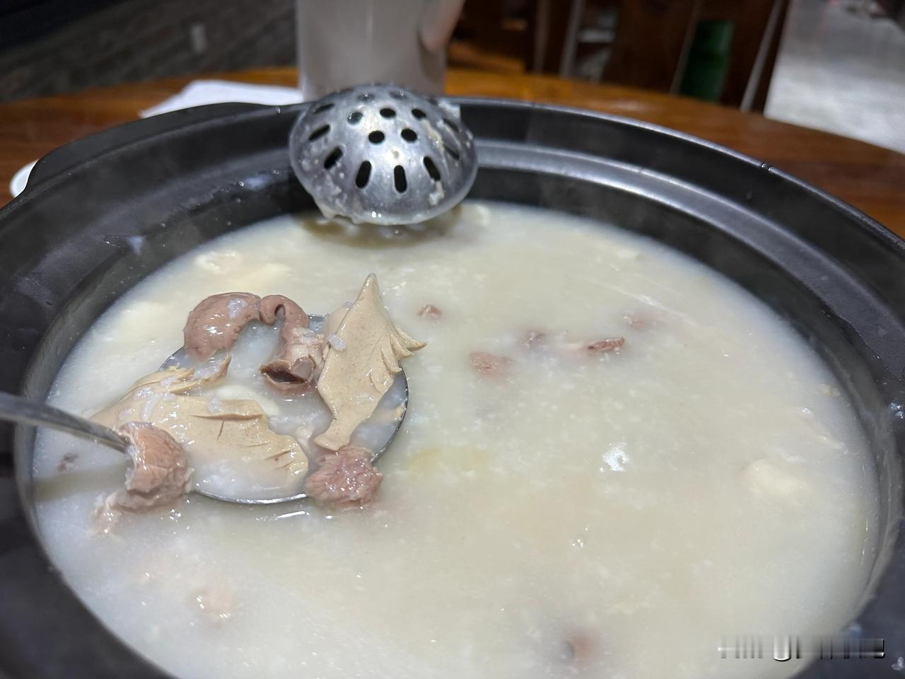 在江门鹤山一个开在村里的私房菜馆吃到了新鲜猪杂粥,朋友专程推荐的最大缘由猪杂洗得特别干净,餐厅里也打扫得很干净,没有任何油腻感,吃完过后肚子也很清爽;点了猪杂和鸡蛋面,先喝了粥,随后再放猪杂边吃边聊,雨夜在店里一呆就是一个多小时,确实值得回味;端午假期专程来鹤山看古劳水乡的鹤舞龙舟,不过,听说今年鹤山没有龙舟比赛,去年鹤山龙舟节搞得风风火火,中东西村的摇头一战成名,今年的龙舟节为何却没影儿了?