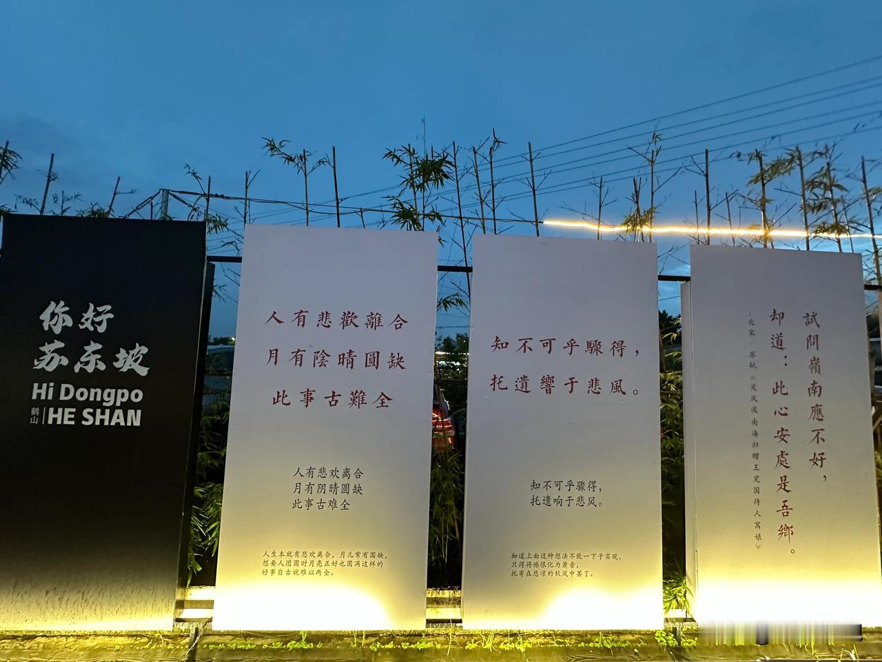 雨夜到了江门鹤山沙坪的渝文木舍文创区,正好遇到苏东坡的展览,原来苏东坡从广州到惠州时曾路过此地,西江边还有个东坡亭;在雨夜的沙坪河边待了好一阵,如果不是所谓舞台噪音突然打破了这情致,还真可能多停留一阵! #旅行#
