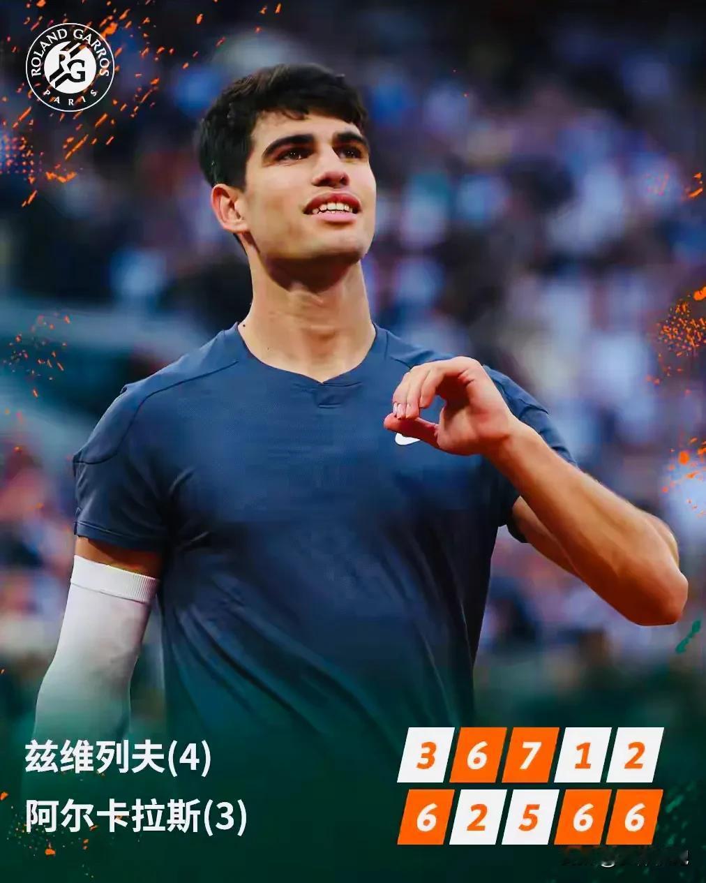 9年前,12岁的阿尔卡拉斯和家人一起在罗兰加洛斯的草坪上看法网;9年后,21岁的阿尔卡拉斯第一次拿到法网男单冠军,梦想照进现实!