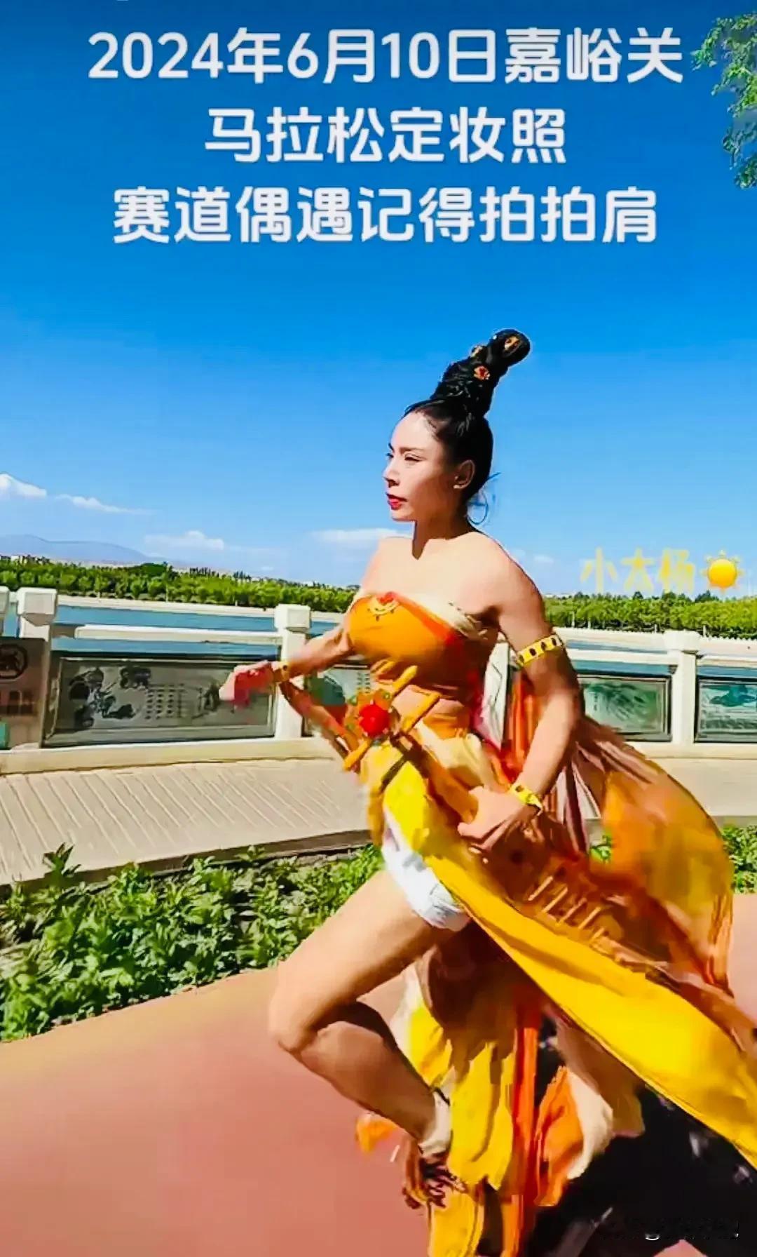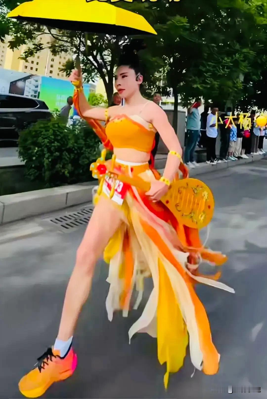 兰马飞天女神小太杨的参赛频率真高,5月26日的兰州马拉松全马,6月10日的嘉峪关马拉松全马,今天的贵阳马拉松又是全马,妥妥的劳模啊!据说今天她饰演的是大家朗朗上口的的凤凰传奇歌曲《奢香夫人》这个角色,这身彝族服装还真是挺适合啊,今天贵阳马拉松有没有偶遇奢香夫人的?