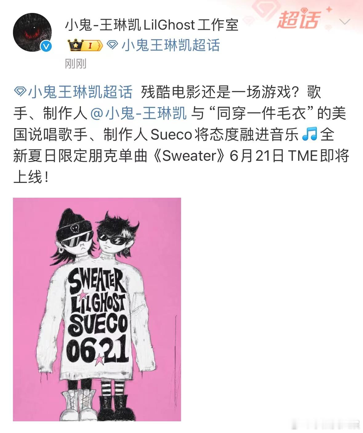 #小鬼出新歌的速度#小鬼的新歌来啦,这封面真的好酷呀,有一说一,小鬼的粉丝吃的也太好啦,新歌就没断过呀~#小鬼Sueco合作新歌Sweater#
