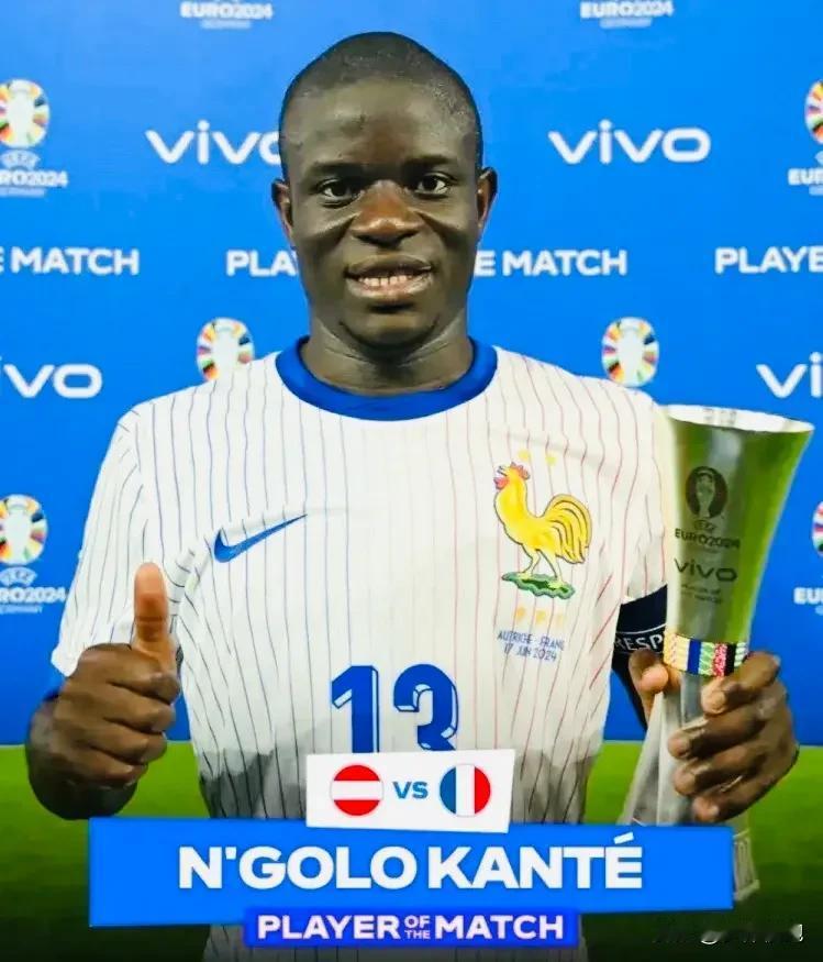 坎特用一场比赛就证明德尚的选择没有错!法国对阵奥地利比赛最后10分钟,0-1落后的奥地利队后场长传发起反击,法国后腰坎特一路狂追,在禁区前化解了奥地利队的单刀威胁,赛后也荣获本场MVP!尽管已经33岁,淡出五大联赛去了沙特淘金,德尚依然信赖坎特,还用他首发打主力,眼光很准!