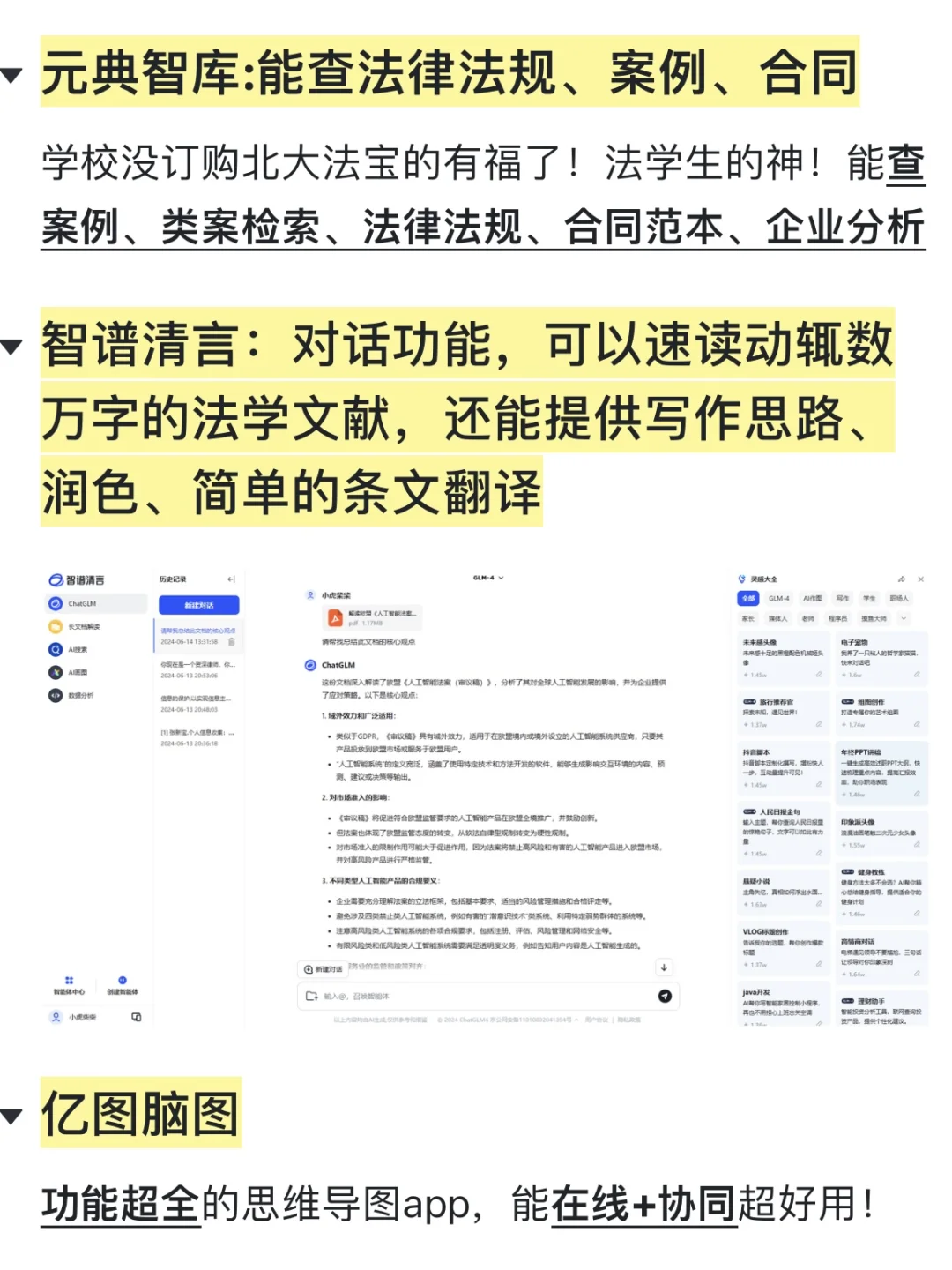 ①智谱清言:对话功能,可以速读动辄数万字的法学文献,还能提供写作思路、润色简单的条文翻译