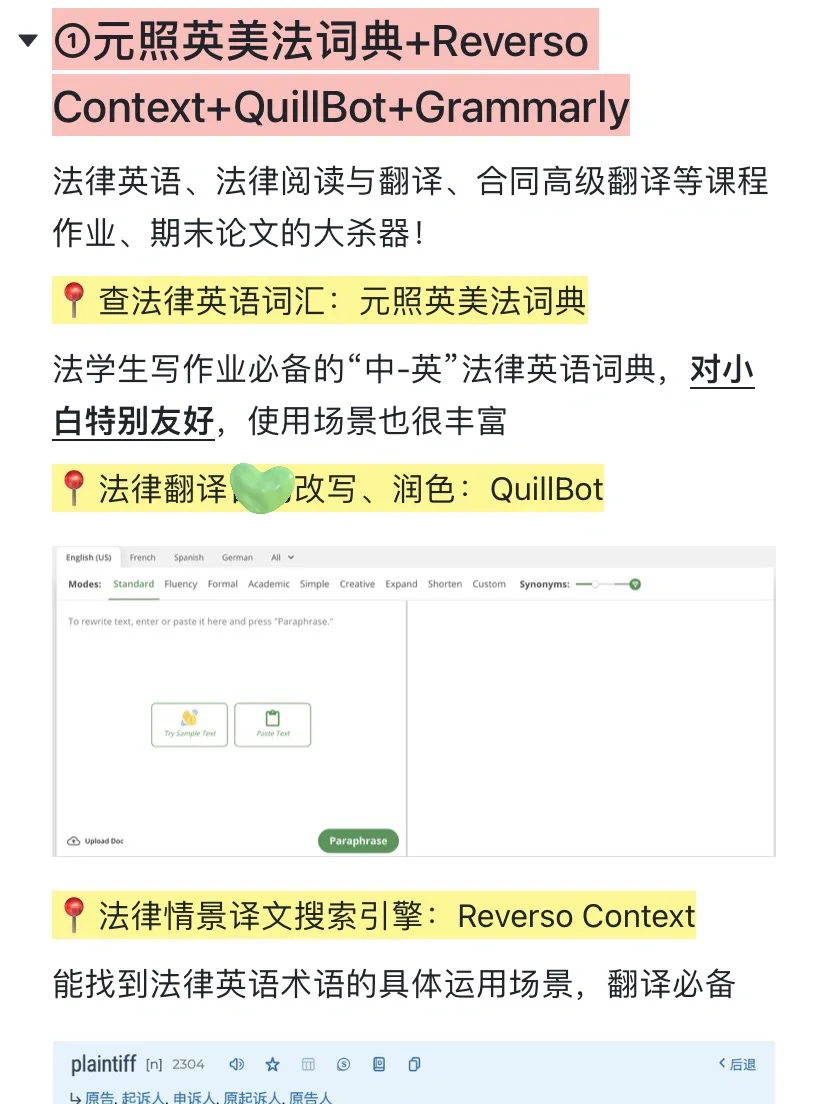❷元照英美法词典+QuillBot+Reverso Context+Grammarly