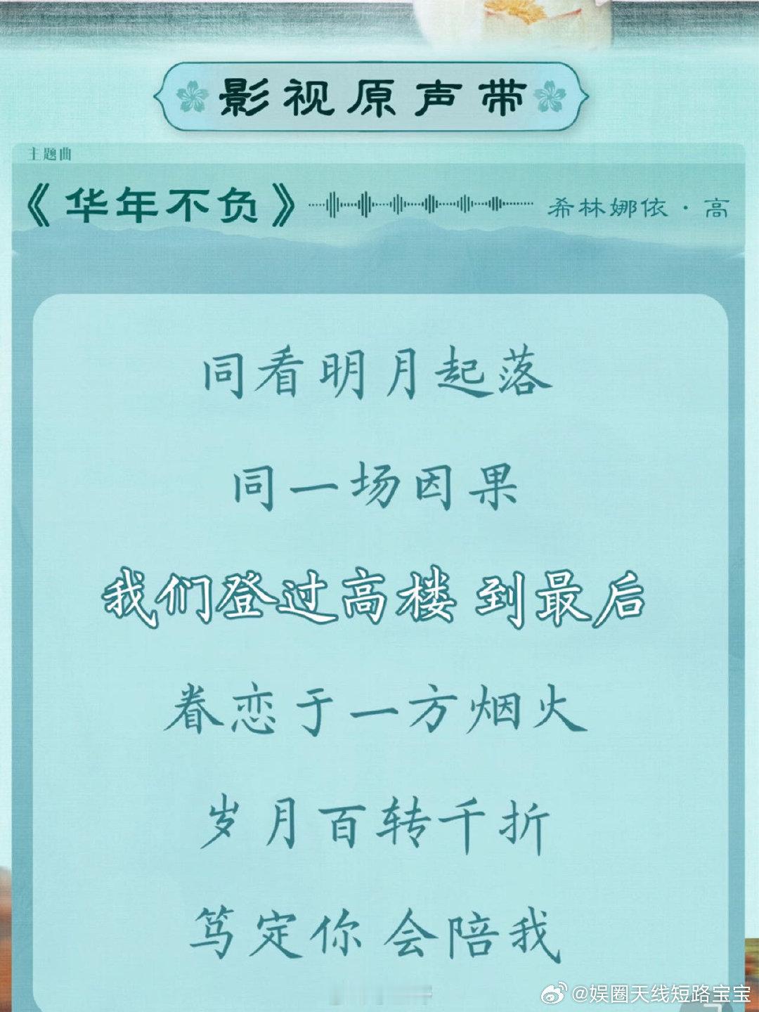 #张凌赫[超话]##度华年OST歌单全阵容#我真的很喜欢这样的一个阵容,而且从这个作品的歌单当中都能够感受到