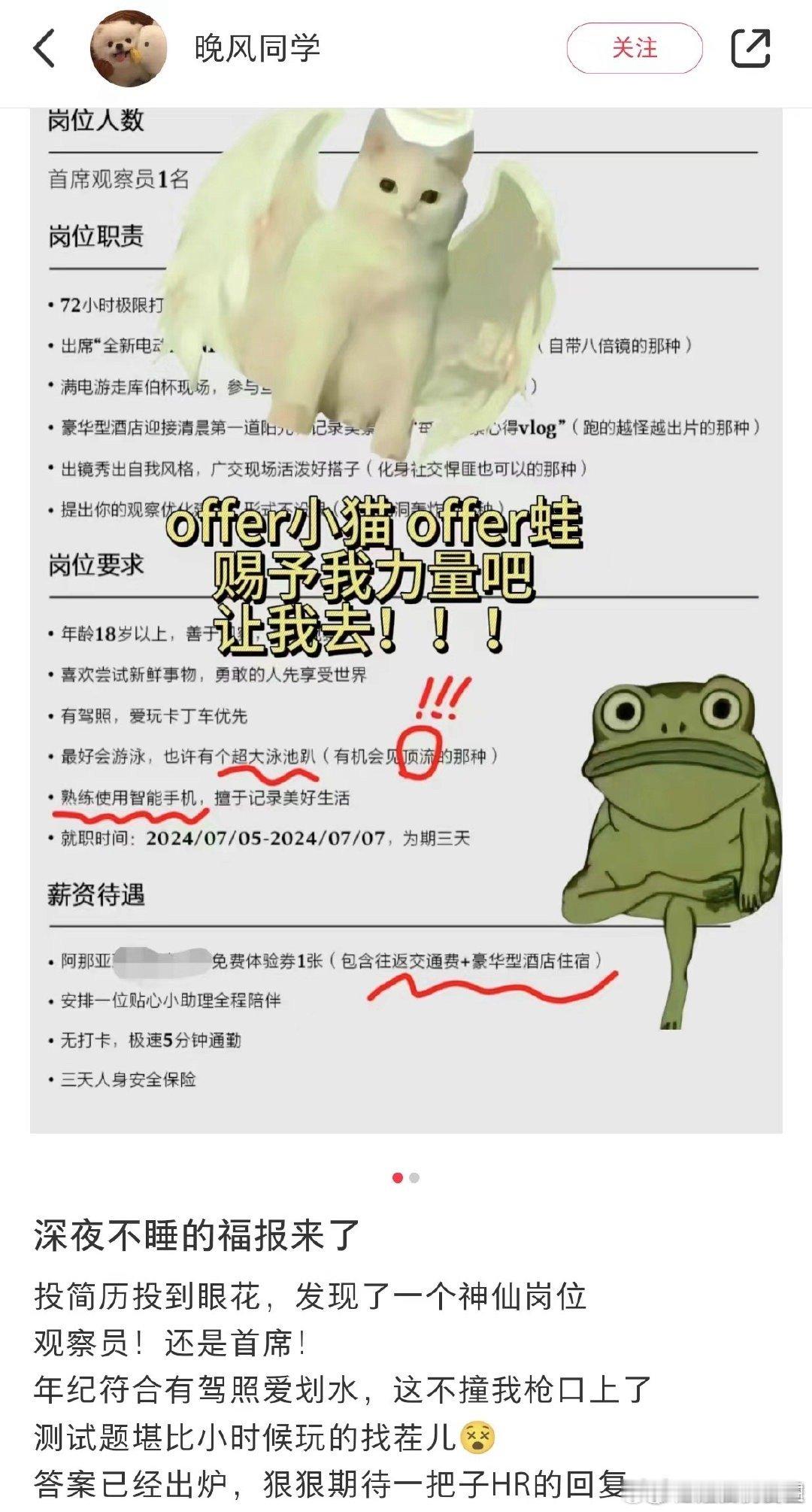 #一条正经招聘硬控我3秒#这样的招聘广告还真是太新奇了,完全一整个心动满满的程度,期待后续更多精彩时刻#论当下HR的精神状态#