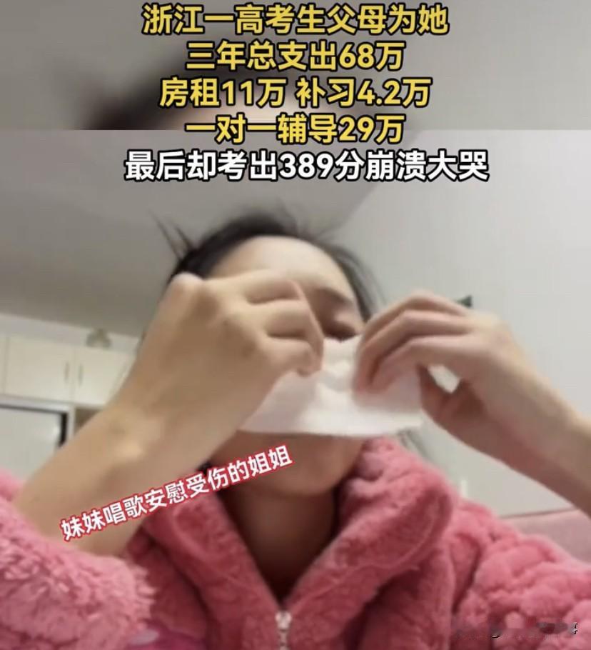最悲催的考生家长!浙江,一位母亲陪着女儿查询高考分数,看到总成绩389分!妈妈瞬间崩溃大哭,因为在3年的时间里,整个家庭给孩子的补课投入花了68万,换来的却是这样的成绩