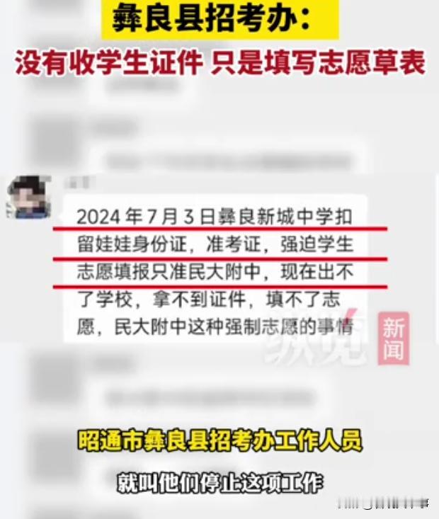 强迫报考指定高中?云南邵通,有家长在网上爆料,孩子中考考了674分,原本已经有了报考意向的中学,不料,中学班主任却将考生们的学生证件收走,强迫报考指定高中,当地招生办回应:只是填写志愿草表