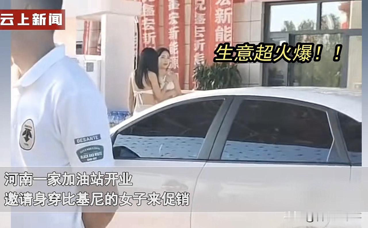 河南开封,一加油站开业,为了促销商家邀请了一排身穿泳装“比基尼”的小姐姐来加油,这也导致加油站人满为患,甚至有的车主第一天来没排上,第二天继续来加油,不过活动因涉嫌低俗被叫停,引起了不小争议